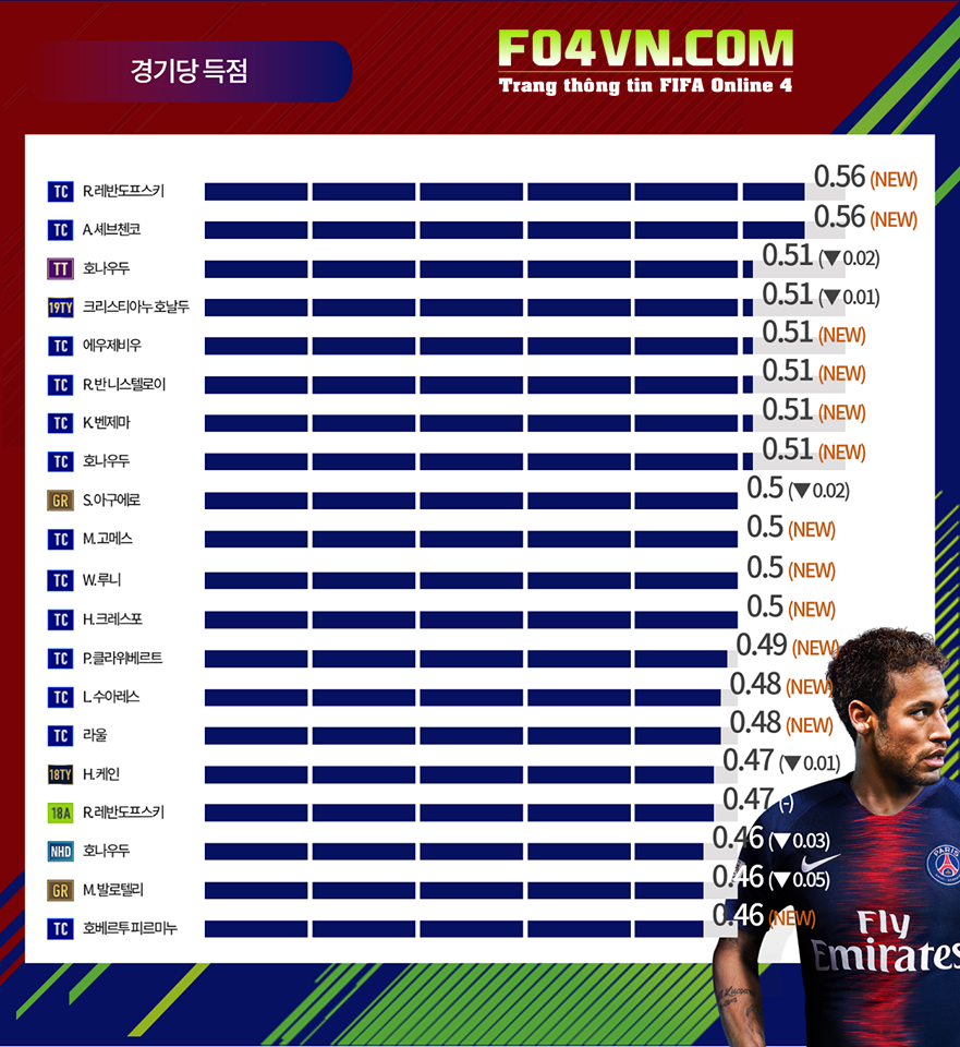 FIFA Online 4 server Hàn Quốc vừa thống kê và đưa ra danh sách top 20 cầu thủ có tỉ lệ dứt điểm chính xác khét nhất giai đoạn nửa đầu tháng 5. Trong đó, mùa giải TC chiếm lĩnh gần hết các vị trí trên bảng xếp hạng.