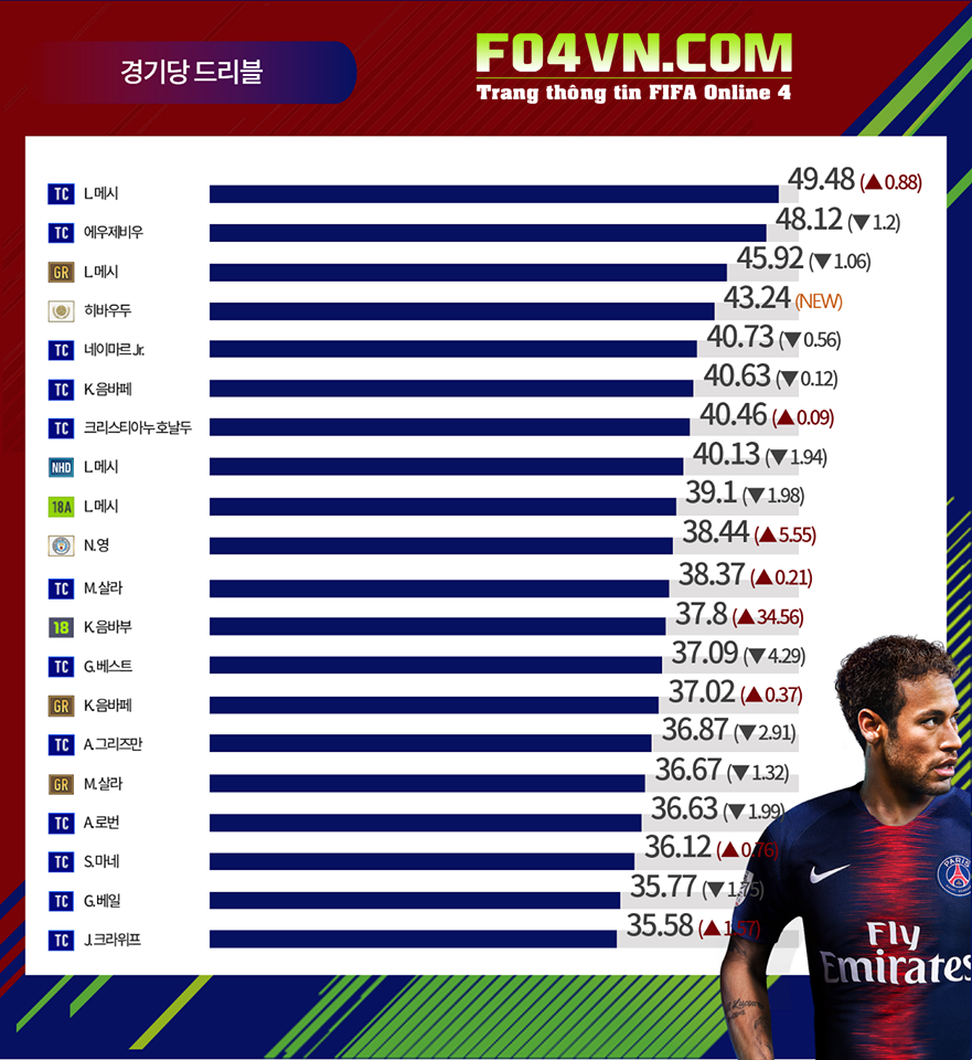 Danh sách kế tiếp trong top 20 cầu thủ chính là danh sách về top 20 cầu thủ có kỹ thuật và khả năng lừa bóng cực hay. Top cầu thủ này giành riêng cho những bạn có lối đá màu mè, thích dùng kỹ thuật để qua người và xâm nhập vòng cấm tấn công.