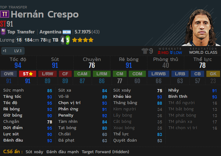 Vốn được nhìn nhận là một trong những cầu thủ có khả năng chuyền bóng không tốt, tuy nhiên có thể thấy trong bảng xếp hạng các Game thủ Hàn Quốc đánh giá rất cao khả năng chuyền bóng của Crespo. Thậm chí anh còn được xếp trên cả L.Modric. Nguyên do là ở khả năng chuyền ngắn của Crespo ở thẻ mùa giải này đã được cải thiện rất nhiều. Những pha chuyền ngắn của Crespo thực hiện rất tốt,bóng đi có tốc độ cao và độ chính xác cao. Khả năng chọc khe sệt và chọc khe bổng của Crespo được cải thiện tương đối đáng kể khiến những đường chuyền vượt tuyến cho đồng đội chạy chỗ của anh trở nên không quá hiểm hóc nhưng là đủ sự hiệu quả cũng như tính ổn định. Điều khá đặc biệt và cũng được coi là điểm mạnh bất thường ở khả năng chuyền bóng của Crespo chính là tạt bóng.Crespo tạt bóng quãng ngắn cũng như quãng dài rất chính xác, bóng đi nhanh, lực mạnh và có độ cong. Với những người đá 2 tiền đạo và chơi lối đá tạt bóng thì Crespo thể hiện khá hiệu quả.