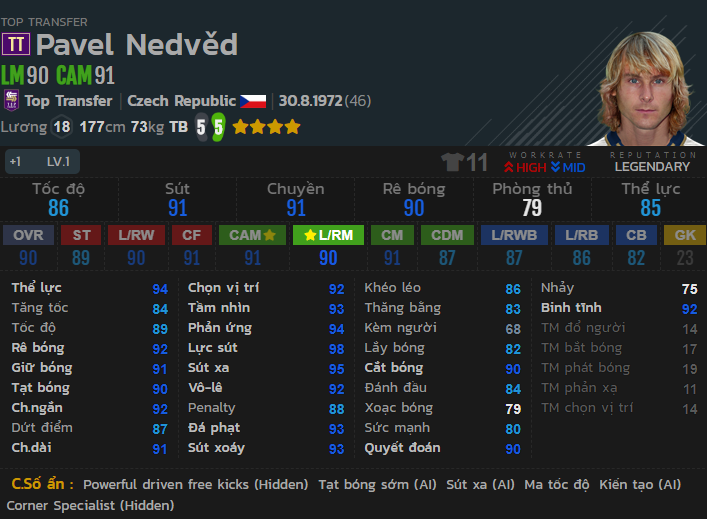 Là một trong những tiền vệ được đánh giá rất cao ở Sever Hàn, Nedved sở hữu khả năng chuyền cực kì tốt. Sự ổn định trong cả những đường chuyền ngắn lẫn chuyền dài khiến Nedved trở nên vô cùng lợi hại. Khả năng chọc khe của Nedved là khá tốt đặc biệt là với việc sử dụng tốt cả 2 chân khiến Nedved gần như có thể chuyền bóng ở mọi tư thế mà vẫn giữ được sự chính xác. Khả năng tạt bóng của Nedved cũng tốt khi anh có thể tạt bóng tốt,có độ chính xác cao bằng cả 2 chân. Một trong những thẻ TT cực kì đáng dùng trong FIFA Online 4 với những bạn có lối đá phối hợp đa dạng.