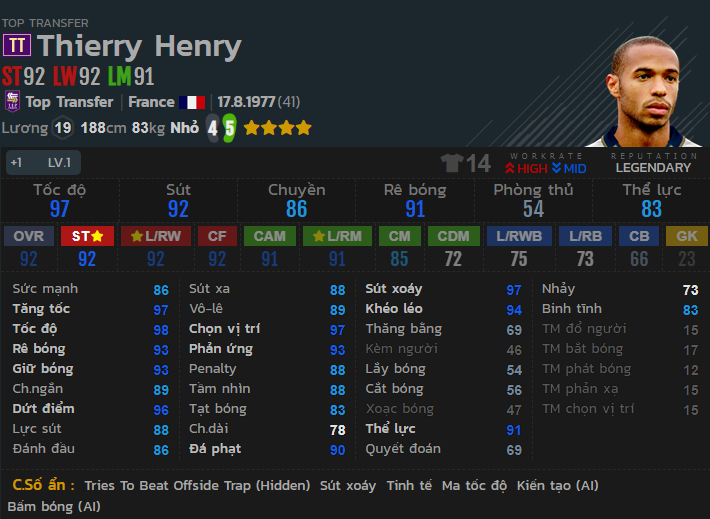Mặc dù có giá rất cao và được nhiều game thủ yêu thích, tuy nhiên khả năng dứt điểm của Henry chỉ ở mức vừa phải, không quá nổi bật do lực sút không thực sự mạnh, bóng đi không quá hiểm. Khả năng sút chân không thuận của Henry là khá phập phù, lúc thì tốt lúc thì lại tệ. Khả năng không chiến của Henry là không tốt mặc dù anh cao tới 1m88 tuy nhiên Henry hay bị các hậu vệ đè xuống và ít khi có cơ hội bật cao đánh đầu, ngay cả khi có thể đánh đầu thì việc điều hướng cũng như lực bóng là khá tệ và dễ bị thủ môn cản phá hoặc đánh ra ngoài. Khả năng dứt điểm 1 chạm của Henry cũng không được đánh giá cao vì lực bóng yếu, hướng đi thường bị lệch hoặc không đủ hiểm khiến thủ môn đối phương cản phá được.Điểm mạnh của Henry là khả năng sút xoáy. Bóng đi rất cong và khó bắt ngay cả khi lực bóng không mạnh. Dứt điểm vòng cấm bằng chân thuận của Henry là tốt. Bóng bay tầm trung rất khó chịu.