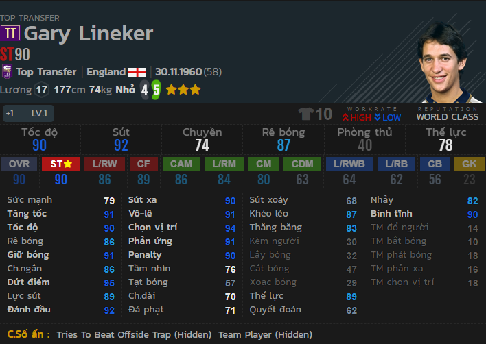 Với bộ chỉ số khá cao nhưng Lineker lại không được đánh giá cao bởi thể hình nhỏ, khả năng tì đè kém, gia tốc di chuyển không thật sự nhanh và vẫn có thể bị các trung vệ với lên tì đè.Lực sút lại không quá mạnh, bóng đi không hiểm. Khả năng đánh đầu kém,bắt bóng sống kém. Cho nên mặc dù bộ chỉ số cao nhưng Lineker không được game thủ hàn quốc đánh giá cao về khoản săn bàn.