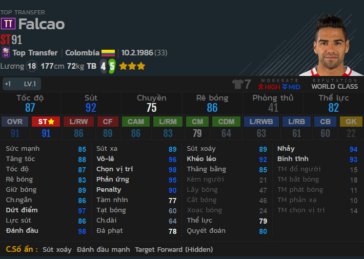 Vốn được mệnh danh là Mãnh hổ Falcao một thời, khả năng dứt điểm của Falcao là cực kì xuất sắc. Những cú dứt điểm chéo góc hoặc sút thẳng bóng luôn có một lực rất mạnh, đi hiểm hóc và có độ chính xác cực kì cao. Khả năng dứt điểm 1 chạm của Falcao cũng được xem là điểm cộng khi bóng luôn được điều đi đúng hướng và có sự chính xác rất cao. Điều đáng được nhắc đến là khả năng ra chân của Falcao là rất nhanh. Nếu Falcao trong vòng cấm và nhận được bóng ở tư thế thuận lợi thì điều b cần làm chỉ là dứt điểm và nghĩ xem mình nên ăn mừng ra sao mà thôi. Khả năng sút xoáy ZD tầm trung của Falcao cũng rất tốt. Đặc biệt là khả năng bật nhảy, đánh đầu cũng như chọn vị trí của Falcao là rất xuất sắc với mức chiều cao chỉ 1m77, Bóng đi mạnh, hiểm cho dù là xa hay gần khung thành thì độ chính xác cũng rất cao