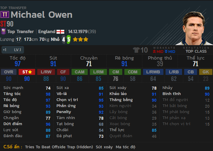 Khả năng dứt điểm của Owen là cực kì tốt, khả năng sút chéo góc hay sút thẳng trong phạm vi vòng cấm thì bóng luôn đi với lực vừa phải nhưng có độ hiểm cao. Khả năng sút xoáy cứa lòng tầm trung của Owen là rất tốt, bóng có độ cong cực kì khó chịu và tỉ lệ đi vào góc chết của khung thành là rất cao. Khả năng dứt điểm 1 chạm cũng là điểm mạnh không thể bàn cãi của Owen khi anh bắt bóng sống rất tốt, lực mạnh và độ chính xác là rất cao. Thứ duy nhất khiến Owen không thể đứng được vị trí cao hơn trong bảng xếp hạng đó chính là khả năng không chiến, thể hình nhỏ cùng chiều cao chỉ ở mức 1m73 khiến Owen không thực sự mạnh trong tranh chấp không chiến. Mặc dù chỉ số nhảy lên tới 89 nhưng có cảm giác như Owen bật nhảy không được cao trong Ingame.