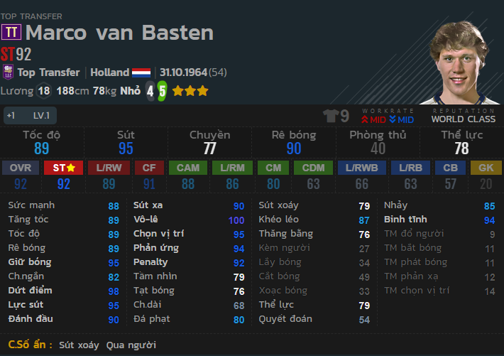 Hoàn hảo có lẽ là đủ để cho thấy một tiền đạo toàn năng và được đánh giá cao bậc nhất FIFA Online 4 hiện tại. Khả năng dứt điểm chéo góc,dứt điểm một chạm hay sút thằng, bóng đi đều rất căng, hiểm hóc và không cho thủ môn bất kì cơ hội cản phá nào. Khả năng không chiến của Basten là rất tốt bởi khả năng chọn vị trí tuyệt vời của anh cũng như khả năng tranh chấp trên không để tạo ra lợi thế dứt điểm bằng đầu là cực kì xuất sắc. Những cú cứa lòng tầm trung hoặc tầm xa của basten là rất tốt. Bóng đi cực kì mạnh ngay cả khi Basten không lấy đà quá nhiều. Nhưng điểm làm nên sự xuất sắc khiến anh đứng vị trí số 1 cho danh sách chân sút khét nhất đó là khả năng dứt điểm tốt ở mọi tư thế. Cho dù là một pha sút thẳng, xoay người dứt điểm, dứt điểm ở những góc hẹp hay dứt điểm ở những tư thế không thuận lợi thì tốc độ vung chân để đưa ra đòn kết liễu đối thủ của Basten là rất tốt. Gần như không thể ngăn cản Basten ở thời điểm hiện tại ở khả năng dứt điểm.