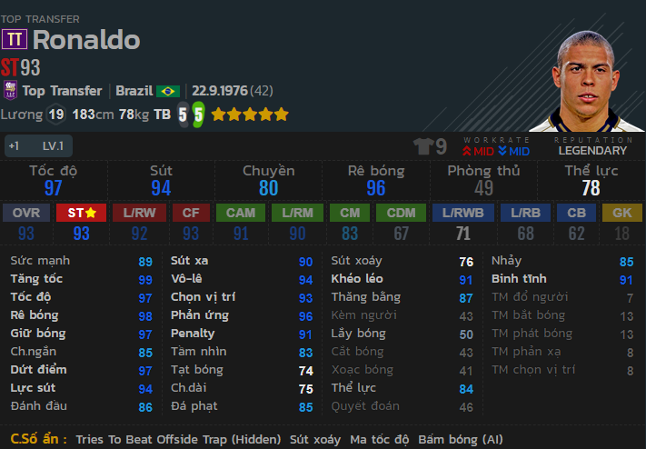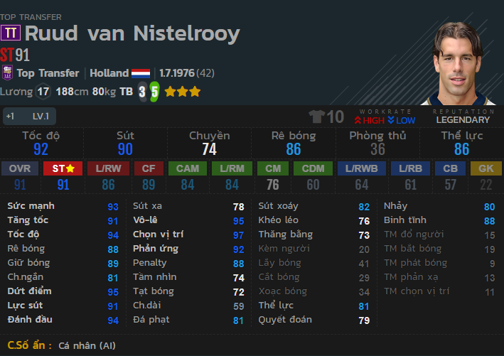 Nhanh, mạnh và chính xác chính là những từ ngữ được dùng để miêu tả Rô béo mùa TT. Khả năng dứt điểm của anh là cực kì tốt, bên cạnh đó với việc dùng tốt cả 2 chân thì gần như Rô béo có thể dứt điểm tốt ở nhiều tư thế và vị trí khác nhau nhưng vẫn giữ được tỉ lệ chính xác cũng như thành bàn cao. Khả năng dứt điểm 1 chạm của Rô béo cũng là rất tốt. Với chiều cao ở mức trung bình, Rô béo đánh đầu hơi thiếu ổn định với những cú tạt bóng cọc xa. Tuy nhiên đánh đầu kết thúc bóng từ những cú tạt cọc gần của anh lại cực kì tốt. Sút xoáy tầm trung cũng là một điểm mạnh của Rô béo khi a gần như có thể sút xoáy bằng cả 2 chân với độ chính xác cực kì cao.