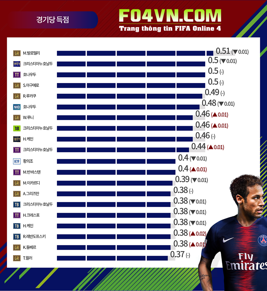 Mới đây bên trang Fo4 của Hàn đã đăng tải danh sách thống kê danh sách top 20 cầu thủ theo từng những hạng mục cụ thể. Danh sách dựa vào số liệu thống kê mang lại của từng cầu thủ.