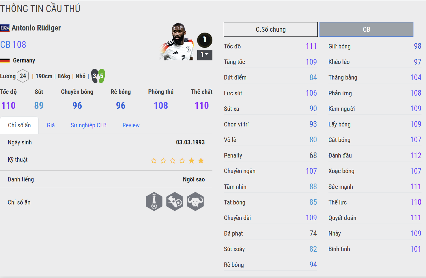 Đây tiếp tục được xem là một phiên bản Rudiger rất đáng quan tâm sau mùa SPL và 23UCL. Tiềm năng của mùa thẻ EU24 chính là việc được tăng chỉ số nếu tiền sâu vào các vòng trong và với một đội tuyển tiềm năng như ĐT Đức thì các HLV hoàn toàn có thể đầu cơ từ sớm.