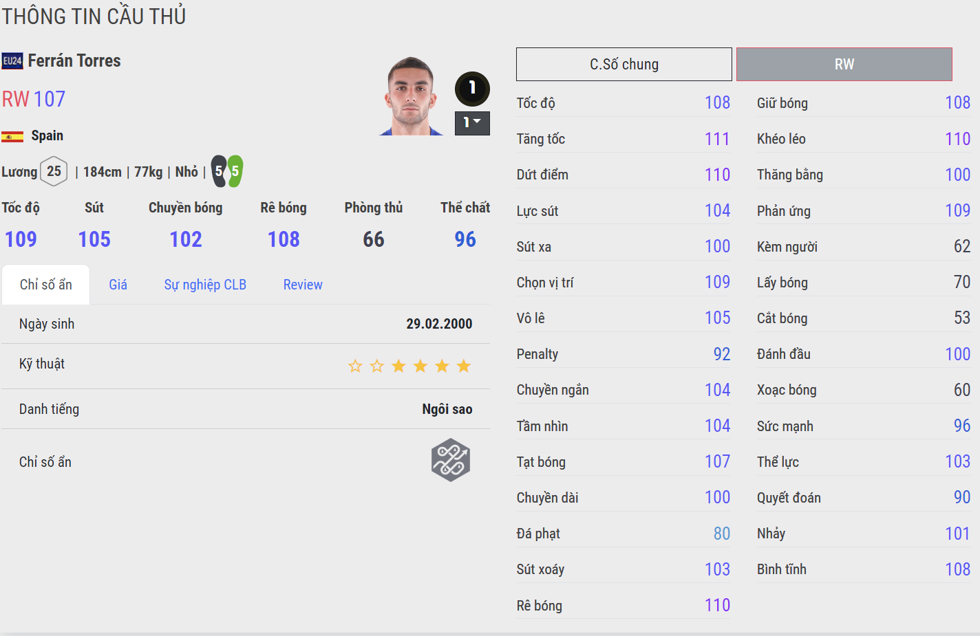 Việc nâng cấp lên 2 chân 5 sao đã khiến Ferran Torres giành được nhiều sự quan tâm hơn với xu hướng chọn cầu thủ đa năng như hiện nay, việc nâng cấp chân sẽ tạo nên những sự khác biệt rõ rệt. Sở hữu 2 team color nổi bật là TBN, Barca và Man City, Torres là cái tên tiềm năng trong thời gian tới.