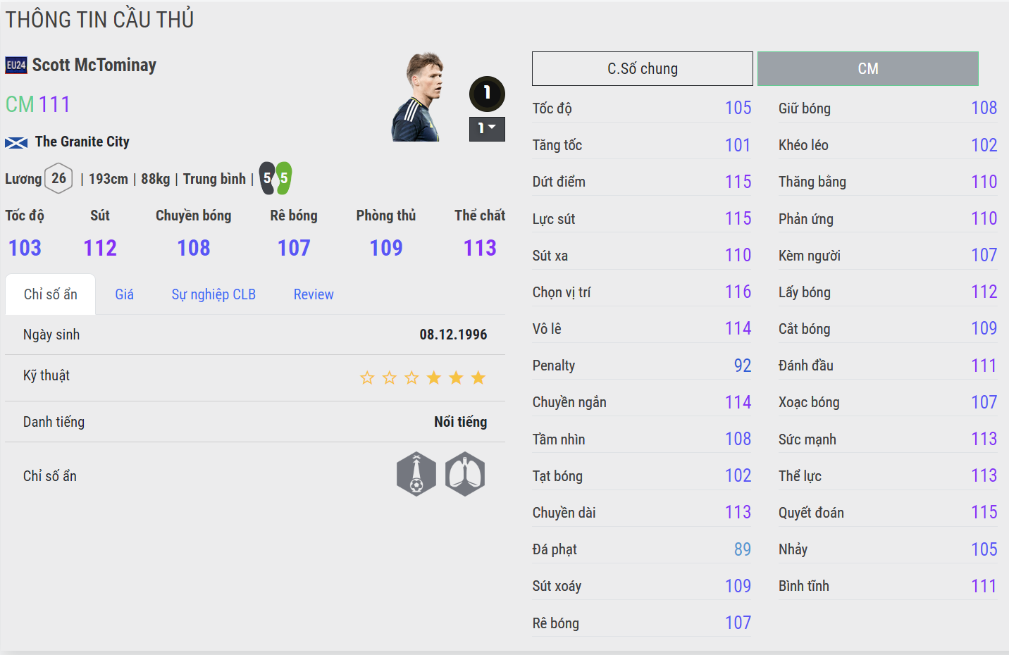 McTominay có một phiên bản cực kì chất lượng khi sở hữu 2 chân 5 sao, bộ kỹ năng sút xa và dứt điểm hiệu quả đến mức có thể kéo McTominay lên vị trí tiền đạo mà vẫn đảm bảo tính chuyên môn. Đây được xem là một mùa giải khá ảo và gây nhiều tò mò cho nhiều HLV đặc biệt là fan Quỷ Đỏ