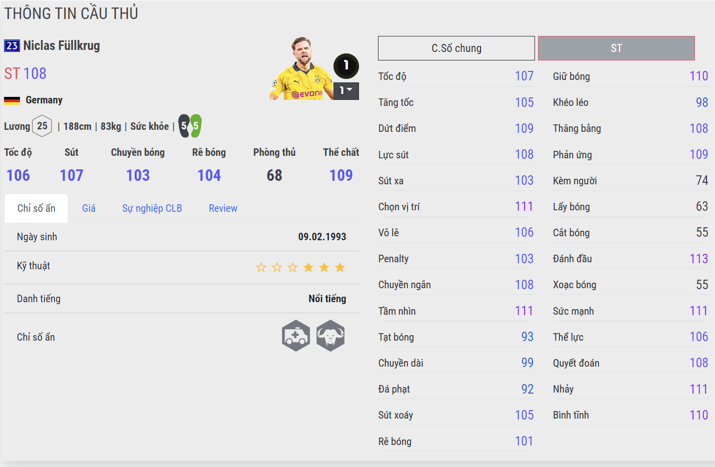 Tài năng sáng giá nhất Real Madrid thời điểm hiện tại chính là Bellingham. Tiền vệ người Anh hiện đang cho thấy giá trị sử dụng cực kì cao ở vị trí trung tâm từ tiền vệ công, tiền vệ trung tâm cho đến tiền vệ trụ. Phiên bản 23UCL được đánh giá như một phiên bản thu nhỏ của 24TY với bộ chỉ số thấp, dễ tiếp cận hơn và có tiềm năng không thua kém gì mùa TOTY hiện tại vốn đang làm mưa làm gió trong rank xếp hạng 1vs1.