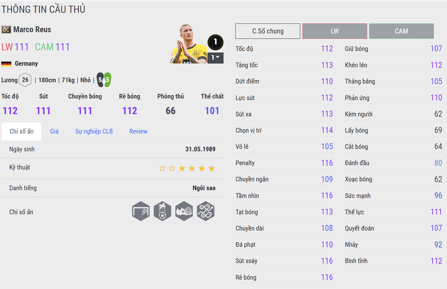 Vị trí đầu tiên được nhắc đến chính là đội trưởng huyền thoại của Dortmund. Reus sở hữu tốc độ rất tốt, khả năng tạt bóng cực kì ảo cùng bộ kỹ năng chuyền bóng phối hợp tốt. Kỹ năng sút bóng của Reus rất tốt đặc biệt là những pha ZD có độ xoáy tốt và hiểm hóc. Khả năng chuyền sút tốt cùng AI di chuyển thông minh khiến cho Reus được tin dùng rất nhiều ở thời điểm hiện tại và anh được đánh giá không khác gì quốc dân cho vị trí chạy cánh.