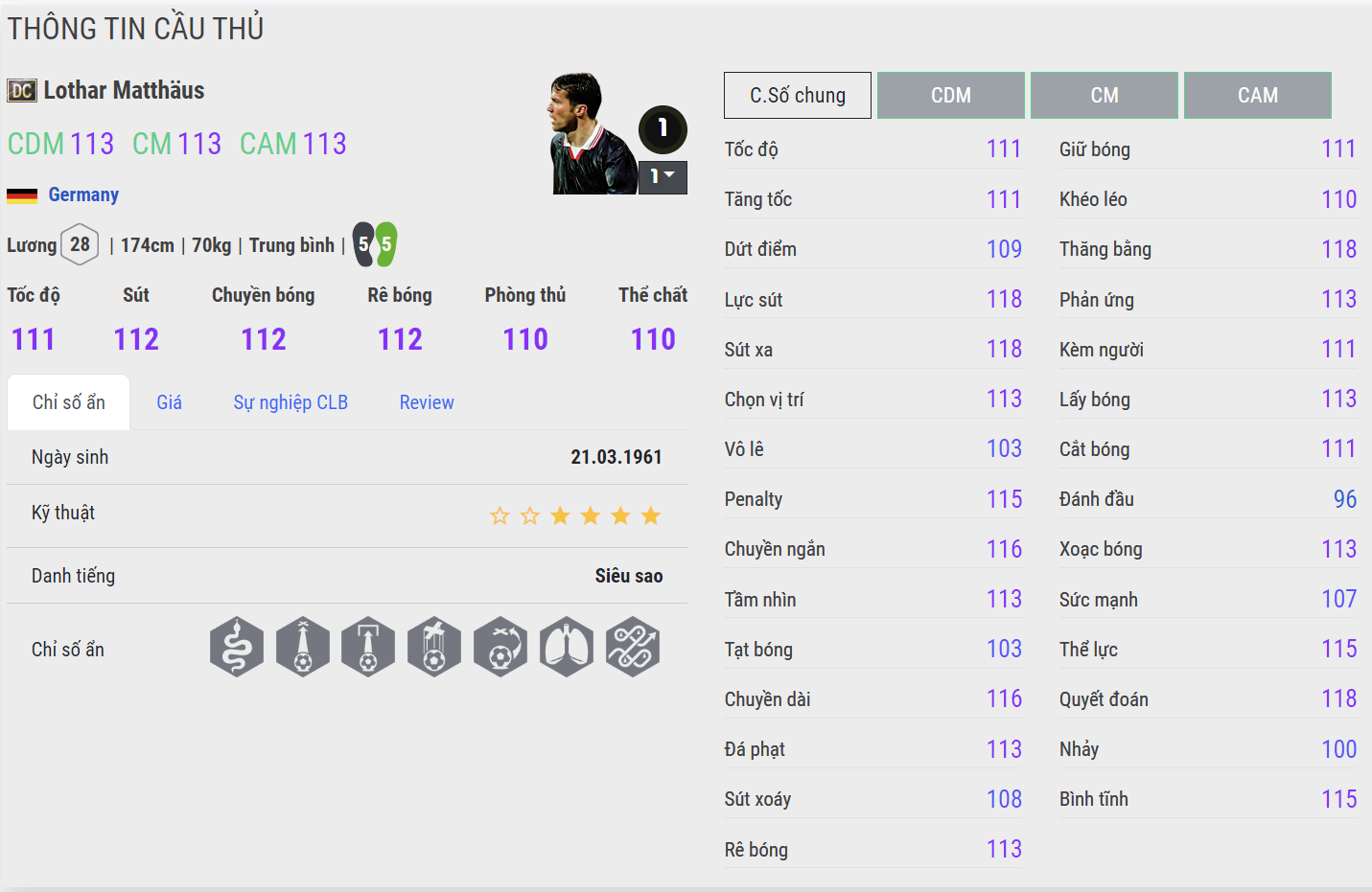 Đây được xem là mùa thẻ có nhiều nét tương đồng và tiệm cận với mùa ICON của Matthaus, cầu thủ người Đức gần như toàn diện ở vai trò tiền vệ khi sở hữu tốc độ tốt, kỹ năng chuyền bóng rất hay cùng bộ chỉ số phòng ngự rất hiệu quả. Thi đấu tốt với vai trò box-to-box, Matthaus có nguồn thể lực dồi dào cùng khả năng cày ải tuyến giữa rất hiệu quả. Ngoài ra khả năng sút xa rất hay bằng cả 2 chân cũng là vũ khí lợi hại cho Matthaus trong những trường hợp nhất định trong trận.