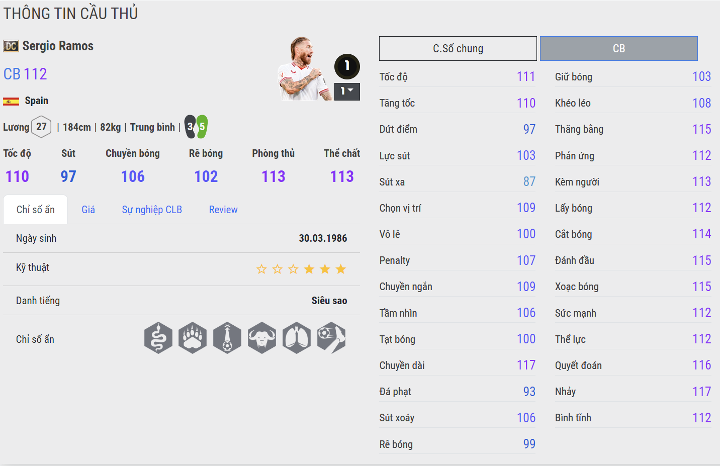Ramos ở những phiên bản trước đó cũng khá đáng dùng tuy nhiên lại chưa thực sự nổi bật. Tuy vậy, mùa thẻ DC đang được đánh giá là mùa thẻ hồi sinh lại trung vệ đội trưởng của Real một thời. Sở hữu tốc độ tốt, kỹ năng tranh chấp rất hay và rắn, khả năng không chiến tốt và đánh chặn hiệu quả. Ramos còn được nhiều game thủ đánh giá với AI phòng ngự cực hay và nổi trội so với hầu hết các mùa giải trước đó của anh.