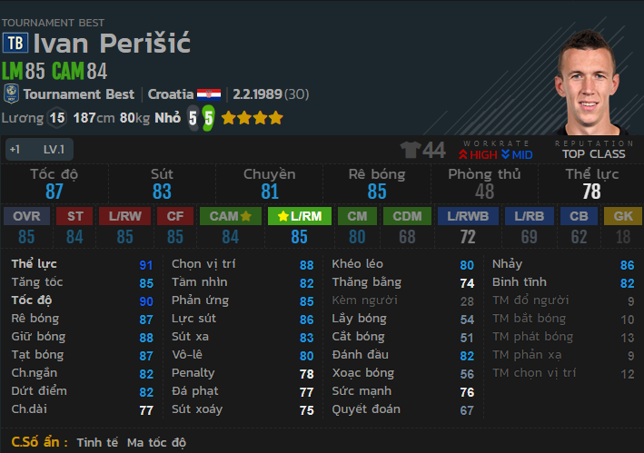 Một trong những cầu thủ có vóc dáng cũng như thế chất ổn nhất trong số cả 5 người. Perisic khá ổn trong các pha tranh chấp tay đôi. Khả năng tăng tốc của Perisic là không thật sự tốt, gia tốc chậm, dễ bị bám đuổi và theo kịp với một số hậu vệ linh hoạt.
