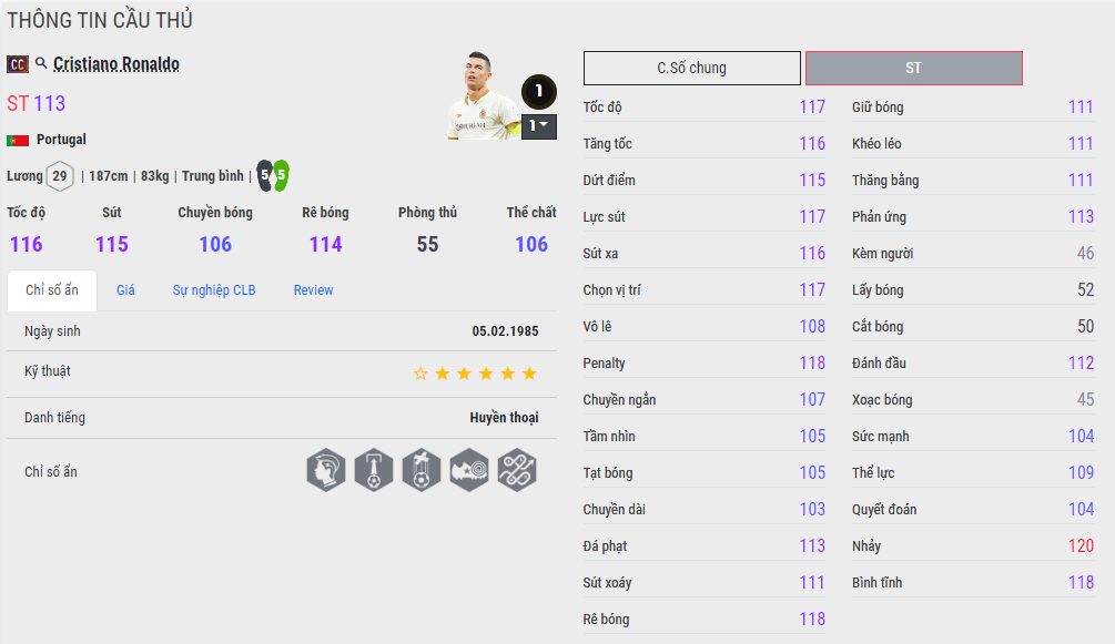 Trong FC Online thì Ronaldo đã rất lâu rồi chưa có mùa giải thể hiện được sự vượt trội của anh so với phần còn lại, việc đã lớn tuổi kèm với sang Ả rập thi đấu đã hạn chế khá nhiều các mùa giải TOTY, TOTS của Ronaldo. Nhưng Nexon đã rất biết cách để chiều lòng các fan của Ronaldo khi mùa Centuty Club có thể coi là mùa tốt nhất của Ronaldo hiện tại.