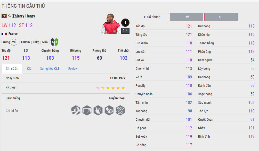 Tiền đạo người Pháp càng ngày càng tỏ ra mình phù hợp với các gameplay về sau của FC Online. Nhờ sở hữu tốc độ nhanh, Henry đang là cái tên được nhiều HLV tin dùng khi lối chơi của Henry phù hợp với sự đa dạng về chiến thuật, sơ đồ cũng như thuộc vào hàng dễ chơi dễ trúng thưởng nhất hiện tại.