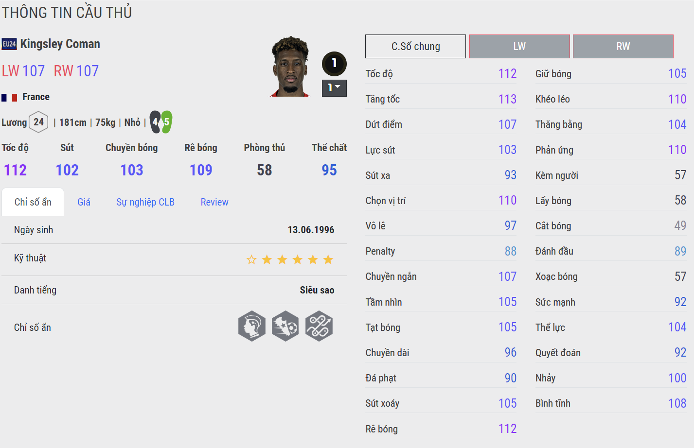Coman nổi bật với tốc độ và khả năng bám biên khi triển khai bóng. Khả năng rê bóng tốt, kỹ năng chuyền và tạt ổn định cùng AI di chuyển thông minh khiến Coman trở nên nhạy bén trong các tình huống dâng biên tấn công.