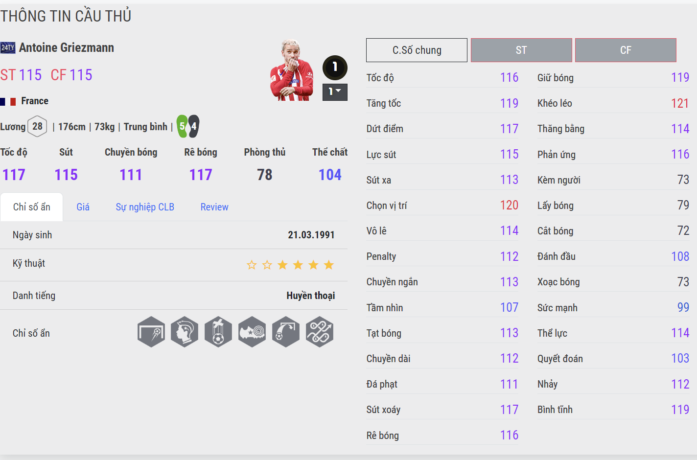 Trở lại mạnh mẽ khi đang dần lấy lại được đẳng cấp vốn có trong màu áo Atletico, Griezmann tiếp tục được đánh giá cao cho vai trò tiền vệ công. Khả năng kiến tạo, chuyền bóng tốt, kỹ năng xử lý bóng khéo léo cùng khả năng dứt điểm lẫn sút xa vượt trội giúp cho Griezmann trở thành cái tên đáng quan tâm ở vị trí CAM. Dù rằng có thể hình không tốt và dễ bị tì đè, nhưng meta ban bật tốc độ như hiện tại thì rất khó để áp sát hay theo kịp Griezmann.