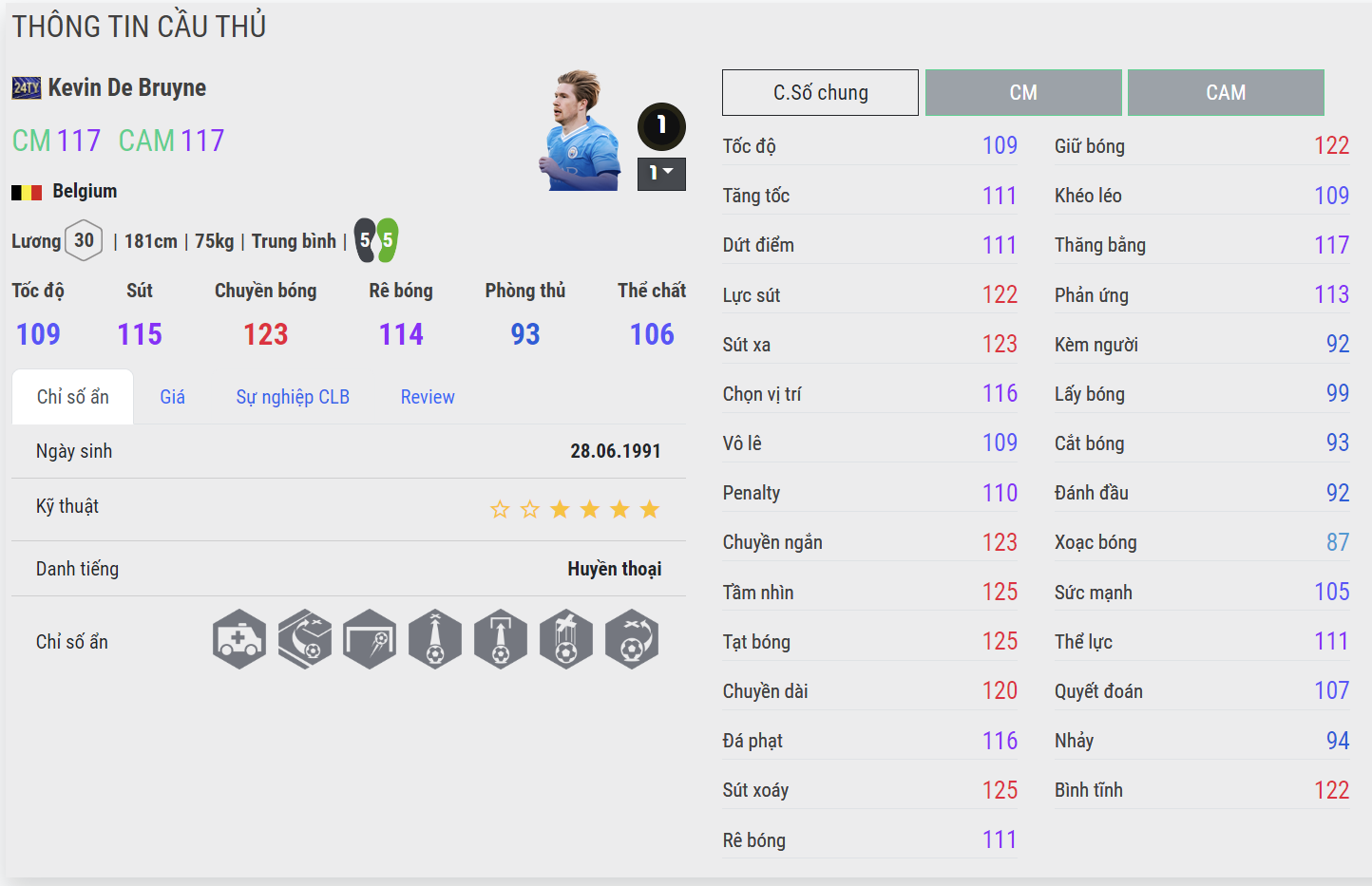 Không cần phải bàn cãi bởi Kevin được xem là một trong những tiền vệ công xuất sắc và toàn diện nhất bóng đá đương đại cả trong game lẫn ngoài đời. Kỹ năng chuyền bóng cực kì xuất sắc, khả năng sút xa tốt bằng cả 2 chân và AI di chuyển cực kì hay khiến cho De Bruyne gần như toàn diện và đáp ứng mọi yêu cầu cho vai trò tiền vệ tấn công của hầu hết các đội hình.