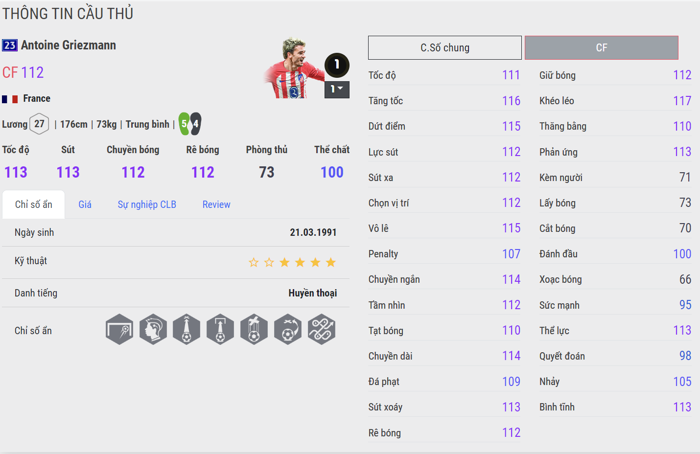 Griezmann mùa 23UCL đang thi đấu rất ổn và cho thấy giá trị sử dụng cao. Kỹ năng tấn công từ tốc độ, khả năng dứt điểm, sút xa, ZD cho đến kỹ năng chuyền bóng, phối hợp, kiến tạo đều được Griezmann thực hiện rất tốt. Khả năng rê dắt, xử lý bóng của Griezmann cũng cho thấy giá trị sử dụng cao và độ hiệu quả trong các tình huống tham gia tấn công. Thăng bằng tốt giúp Griezmann lì hơn trong những tình huống so vai trực tiếp với đối thủ.