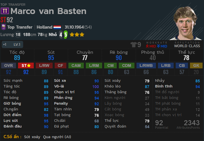 Basten mạnh ở khoản chọn vị trí, luôn đọc tình huống bóng rất tốt. Cùng với đó, sử dụng Basten không hề bị thô cứng như một số tiền đạo khác có chiều cao và thể hình tương tự.