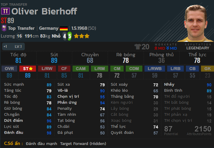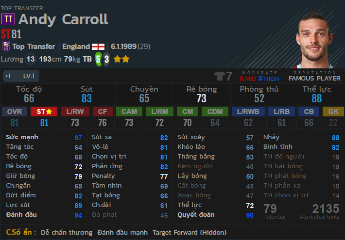 Tiêu chí lựa chọn tiền đạo cho bản FIFA Online 4 hiện tại là những cầu thủ có khả năng không chiến tốt. Khả năng nhảy cũng như tranh chấp tốt.