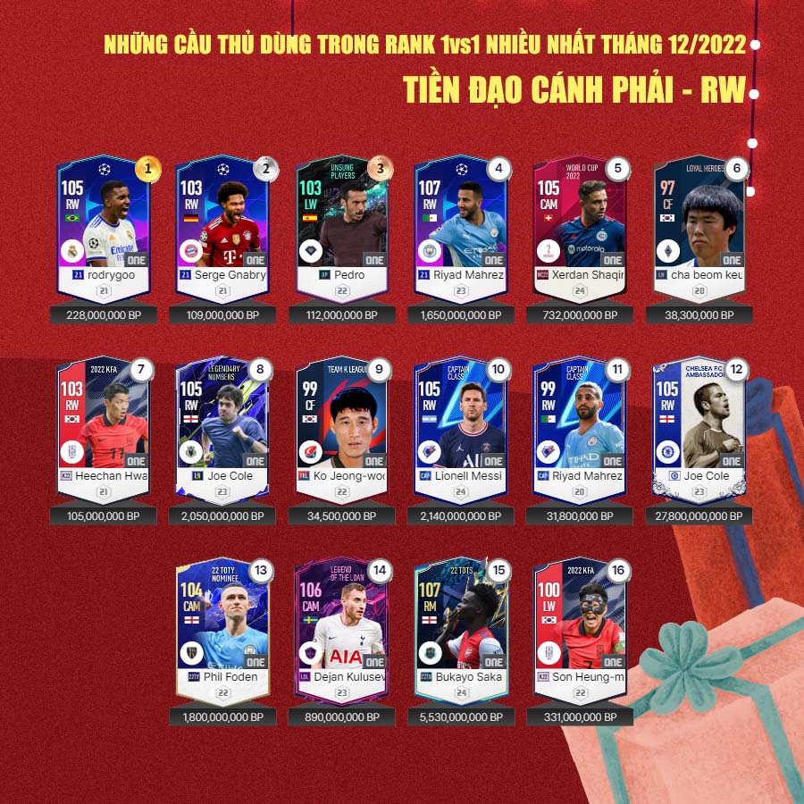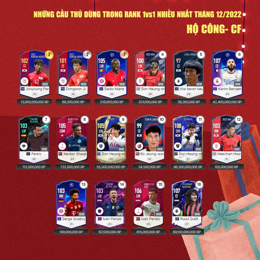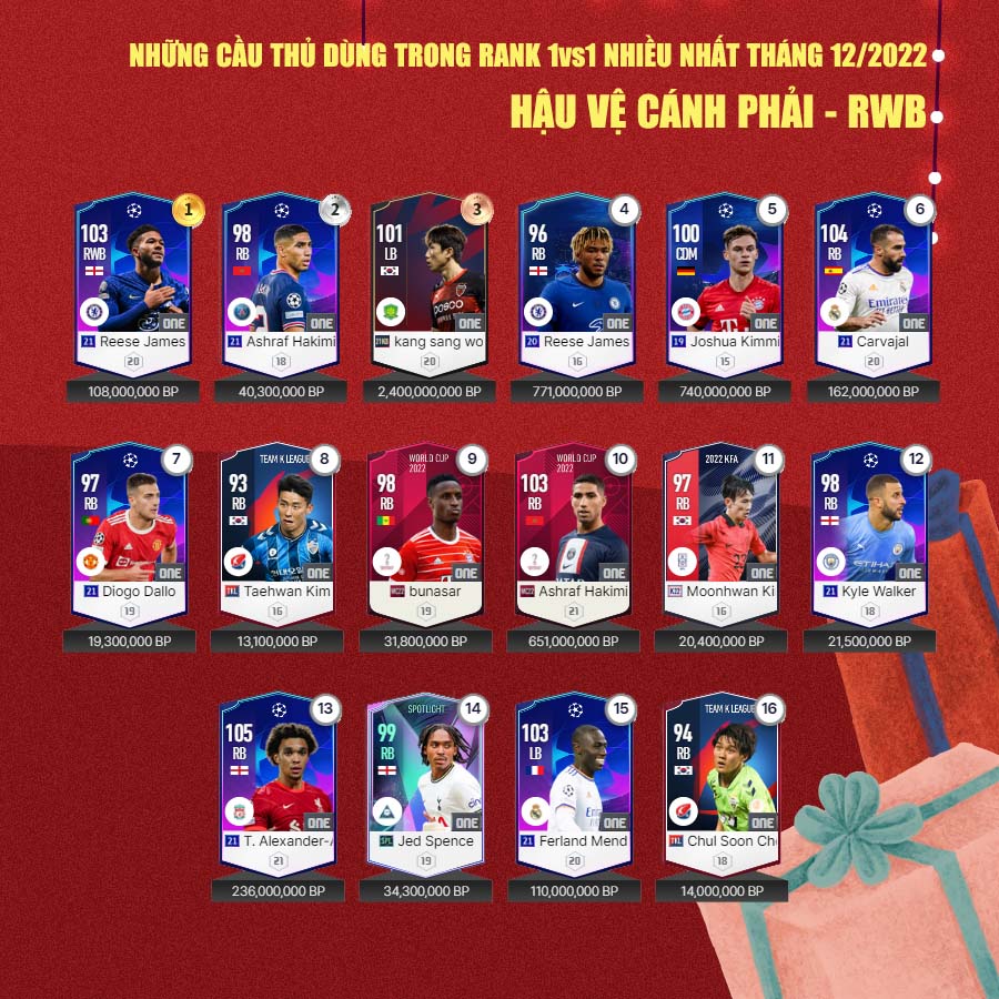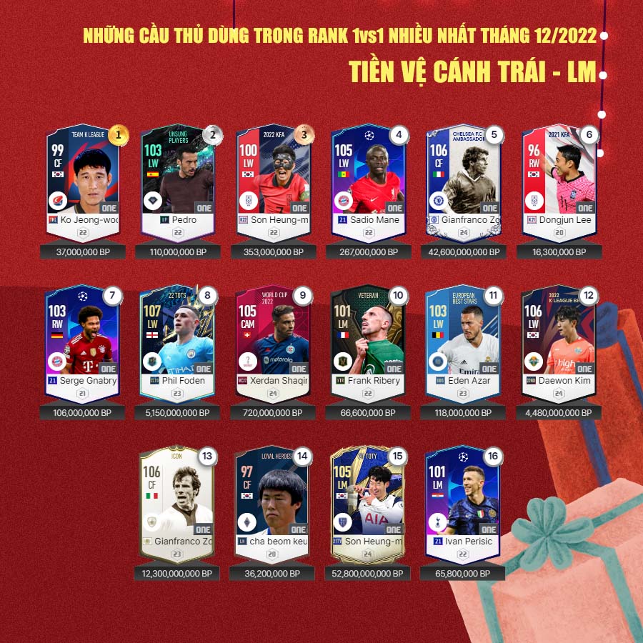 Tuy nhiên cần chú ý là sever Hàn rất chuộng đội tuyển của quốc gia họ nên có rất nhiều cầu thủ Hàn Quốc có mặt trong bảng xếp hạng. Dù sao thì đây cũng chỉ là những thông tin mang tính tham khảo để các bạn lựa chọn những cái tên tốt nhất cho team của mình.