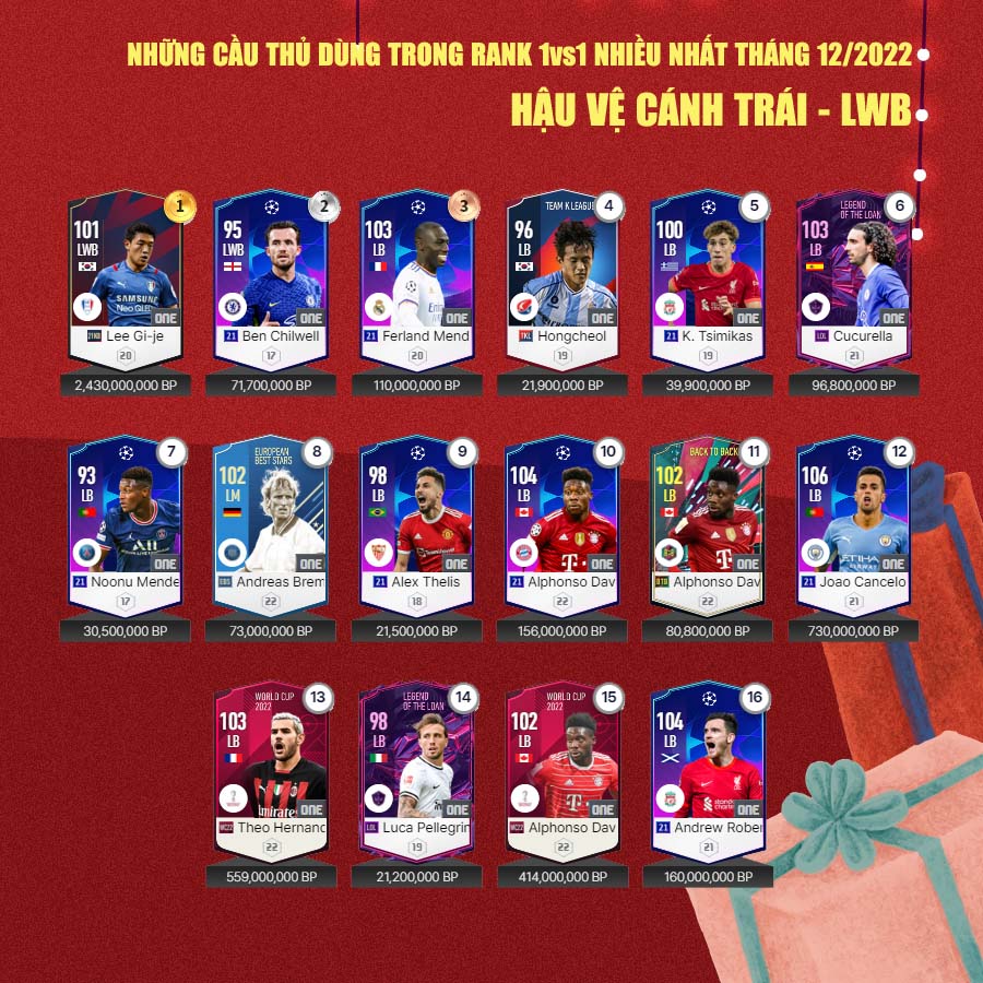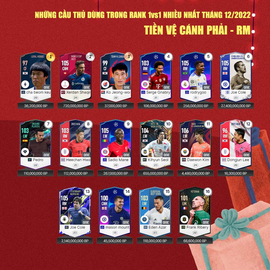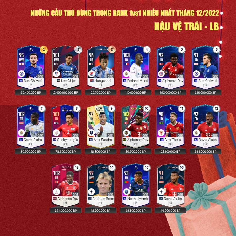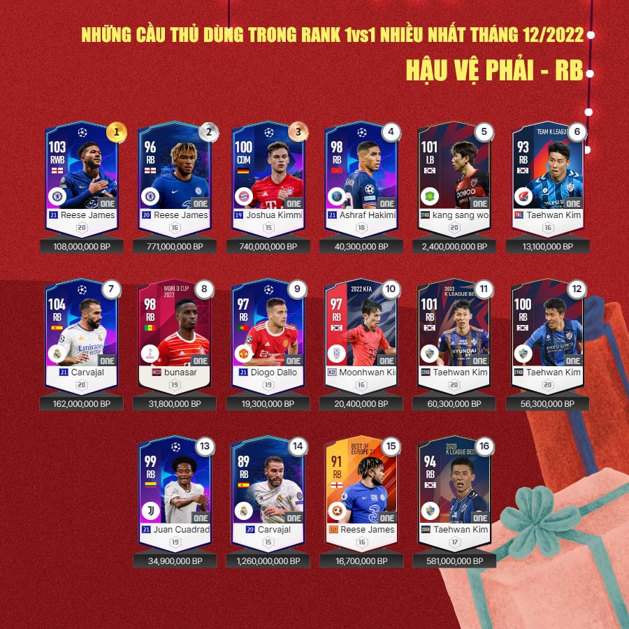 Tuy nhiên cần chú ý là sever Hàn rất chuộng đội tuyển của quốc gia họ nên có rất nhiều cầu thủ Hàn Quốc có mặt trong bảng xếp hạng. Dù sao thì đây cũng chỉ là những thông tin mang tính tham khảo để các bạn lựa chọn những cái tên tốt nhất cho team của mình.