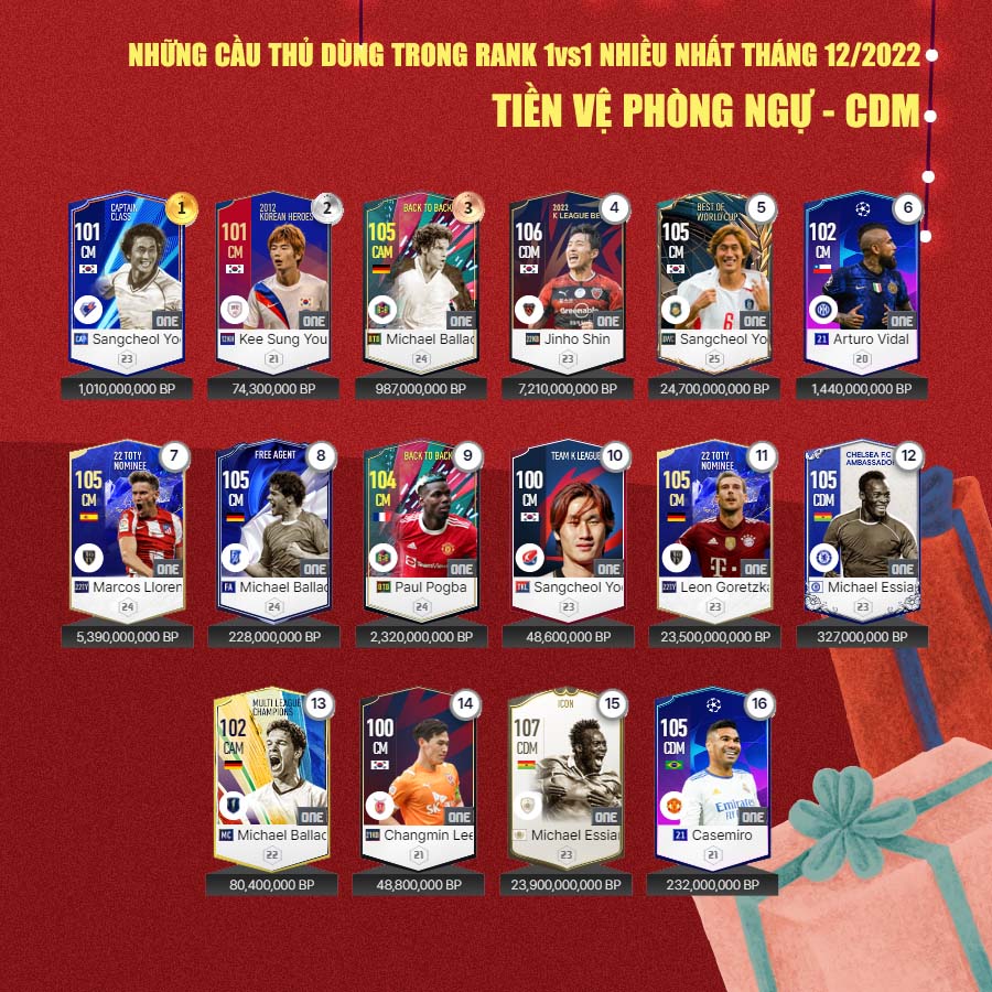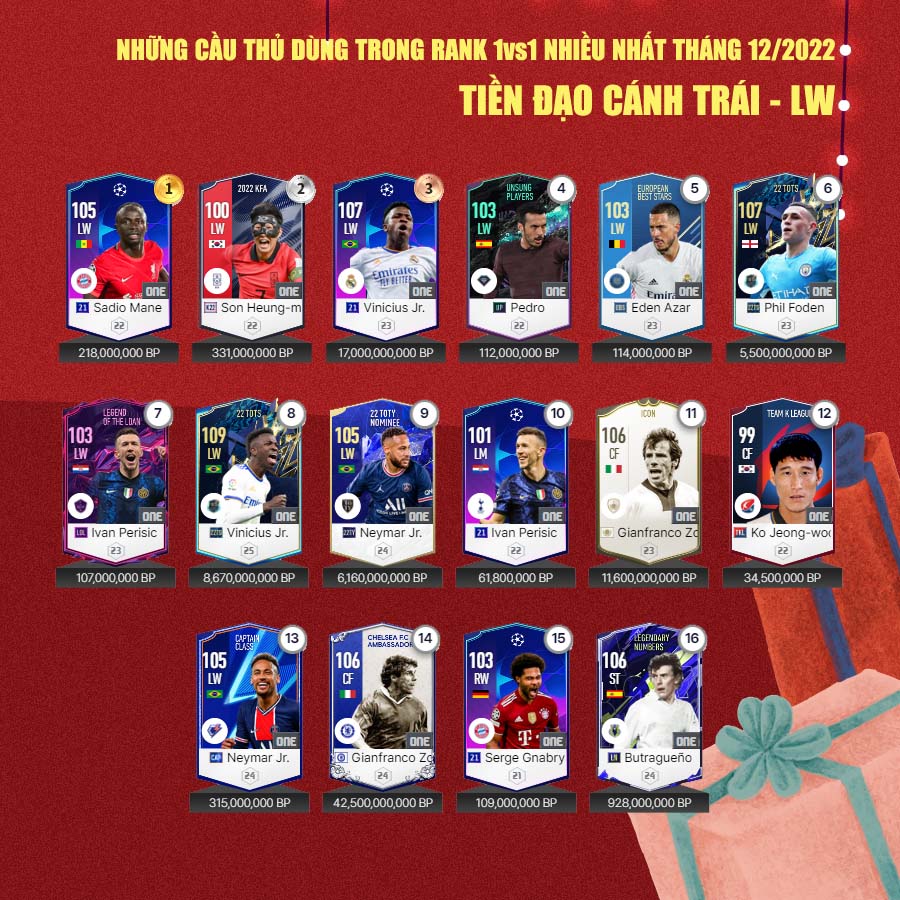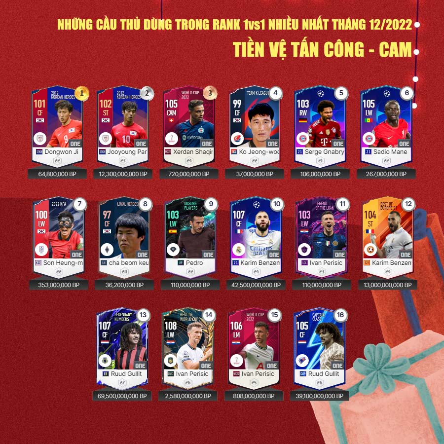 Đến hẹn lại lên, đây sẽ là danh sách những cái tên đáng chú ý nhất trong tháng 12, tháng cuối cùng của năm 2022. Những cầu thủ này là những cái tên được nhiều HLV tin dùng nhất trong đội hình của mình, với tần suất xuất hiện cực cao.