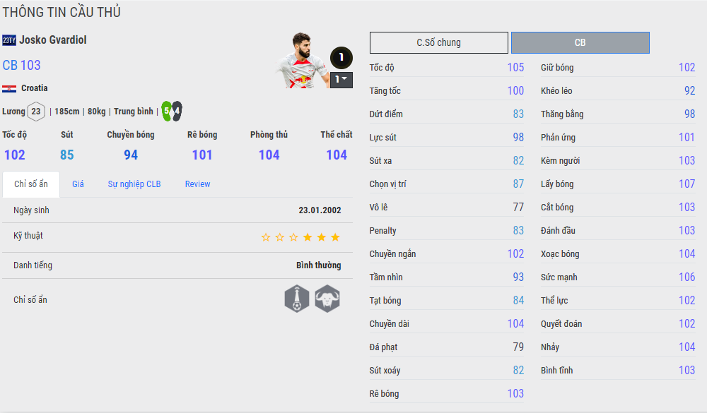 Một cái tên khác cũng rất được kỳ vọng là Gvardiol 23TY, trung vệ trẻ người Croatia leo hẳn vị trí thứ 3 dù mới ra mắt có hơn 1 tuần nhưng tỷ lệ cắt bóng có thể nói là giật mình. Tuy vậy tốc độ của Gvardiol không được nhanh lắm so với các top đầu trung vệ được ưa chuộng hiện này, và cũng hạn chế về team color