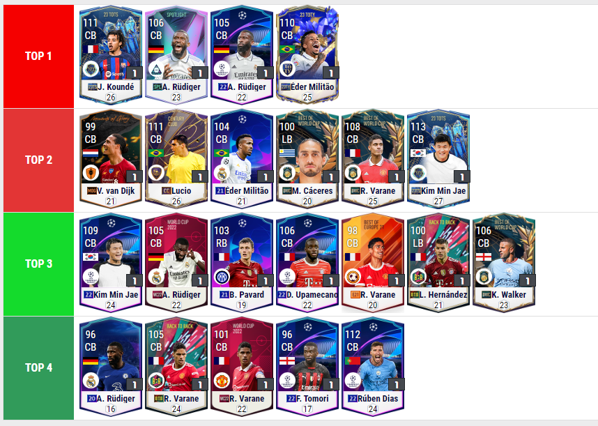Có thể nhận thấy là rất nhiều "cựu ngôi sao" xuất hiện trở lại trong danh sách này như Lucas Hernandez, Pavard, Upamecano chẳng hạn... sau khoảng 2-3 tháng gần như biến mất hoàn toàn khỏi bảng xếp hạng. Nguyên do có lẽ là do việc điều chỉnh gameplay từ phía Nexon, giờ đây các HLV lại quay lại với các cầu thủ có mức lương thấp 20-21 mà giá trị sử dụng không hề thua kém là bao so với các trung vệ có lương 26-27.