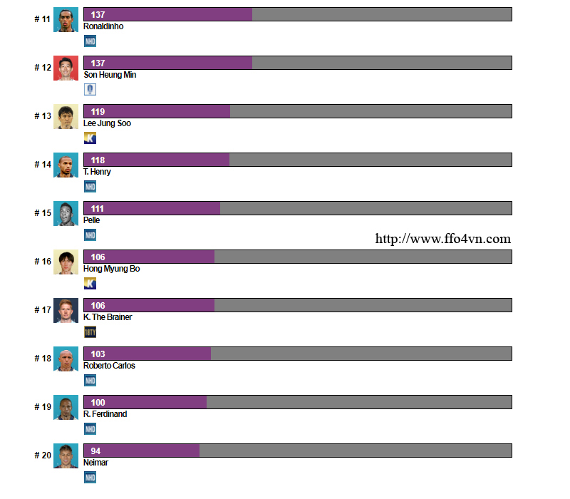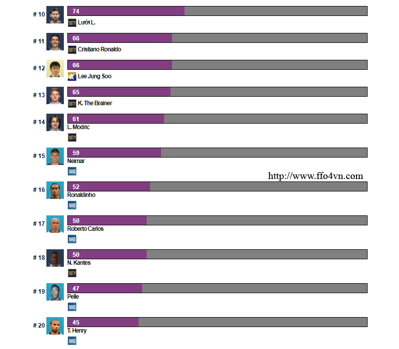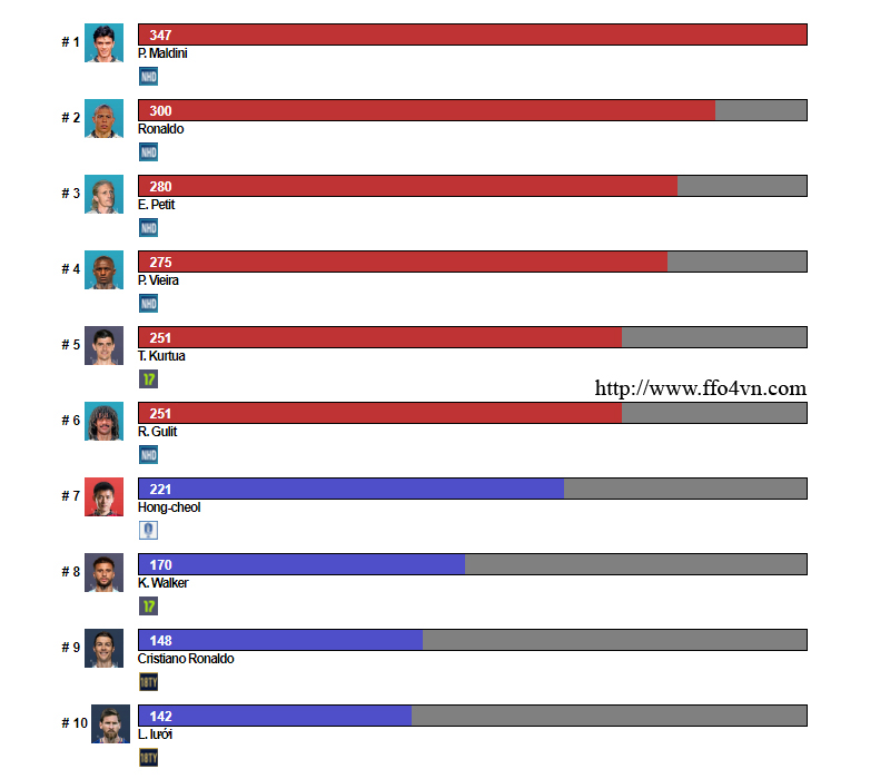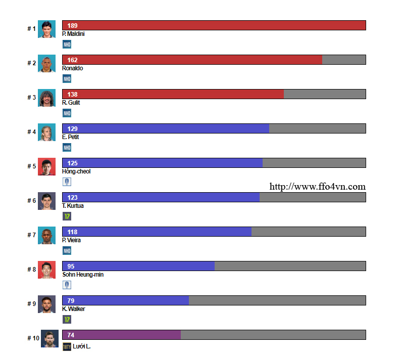 Top cầu thủ được dùng nhiều nhất trong tuần qua