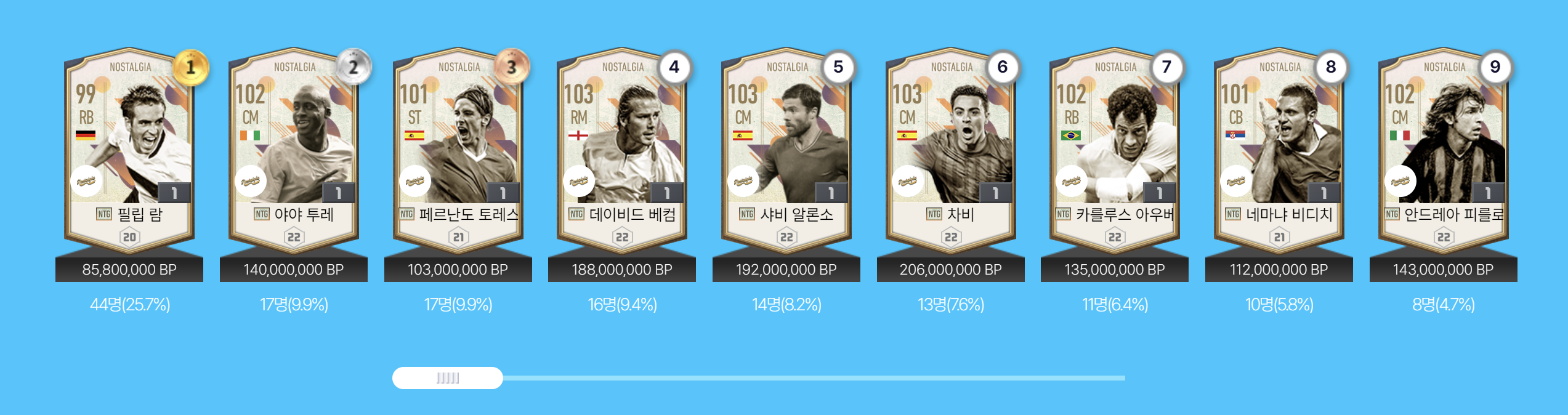 Thẻ NTG sẽ là phiên bản phổ thông hơn của các huyền thoại so với thẻ ICON. Chỉ số của các huyền thoại đều thấp hơn khá nhiều so với phiên bản ICON, nhưng mức giá sẽ rẻ hơn rất nhiều.Mức lương của thẻ NTG cũng không quá vượt trội so với mặt bằng chung.