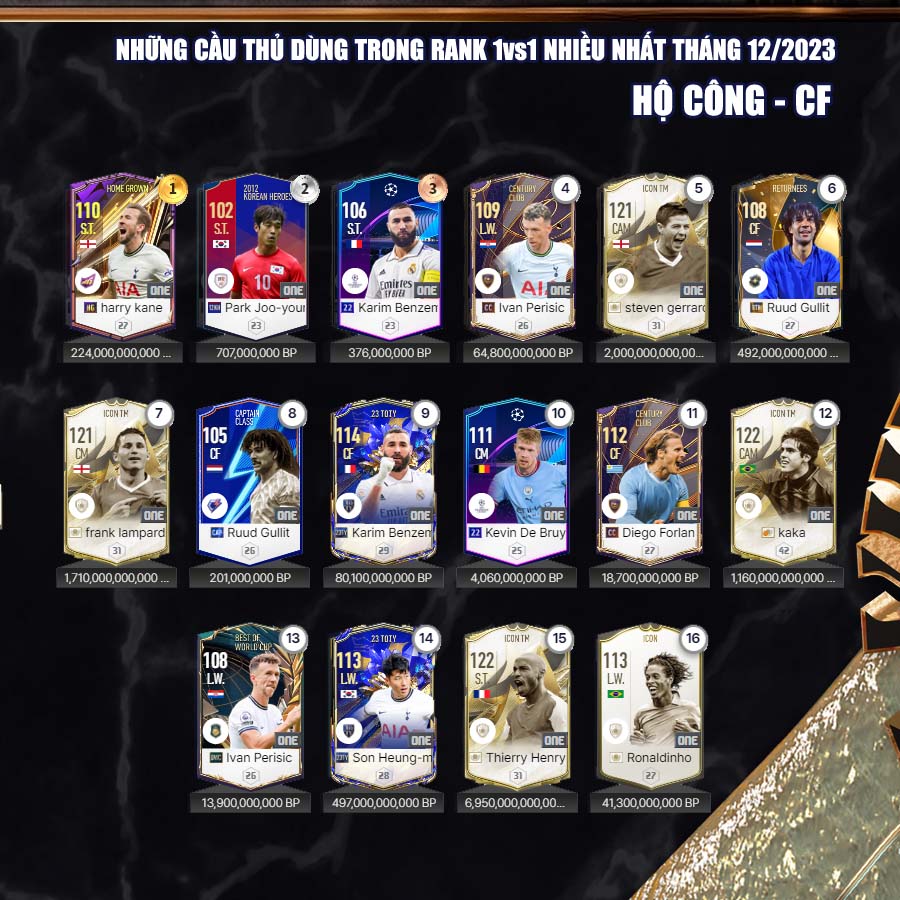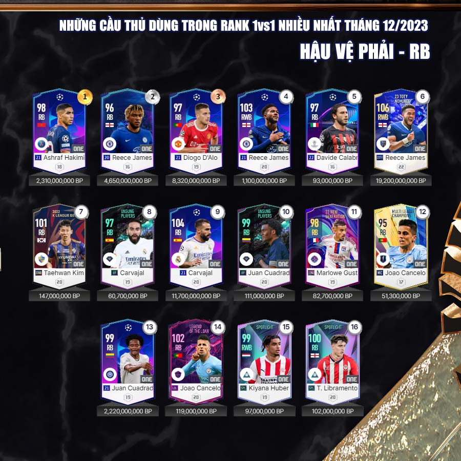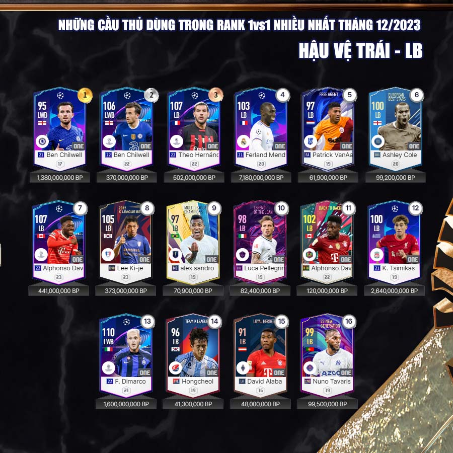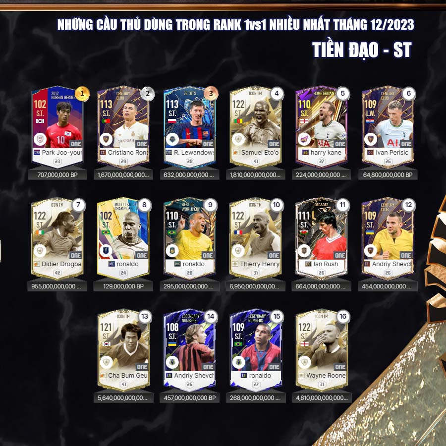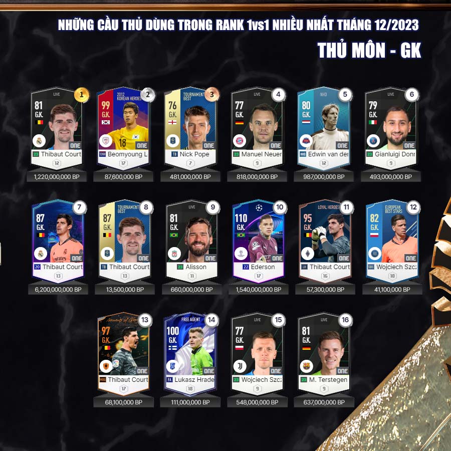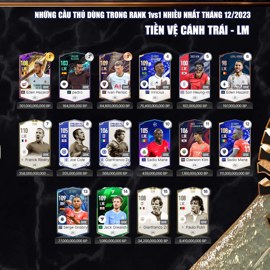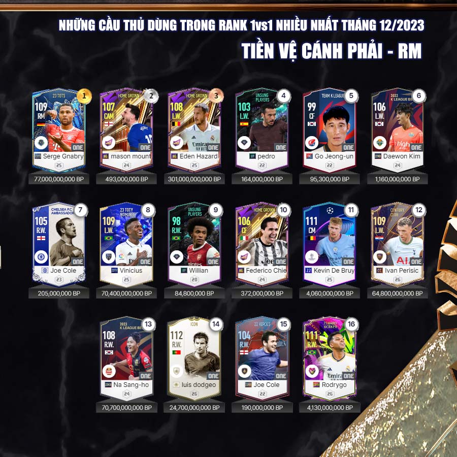Hãy cùng chúng tôi điểm lại danh sách các cầu thủ được được sử dụng nhiều nhất tại máy chủ Hàn Quốc trong tháng 12 theo từng vị trí cụ thể