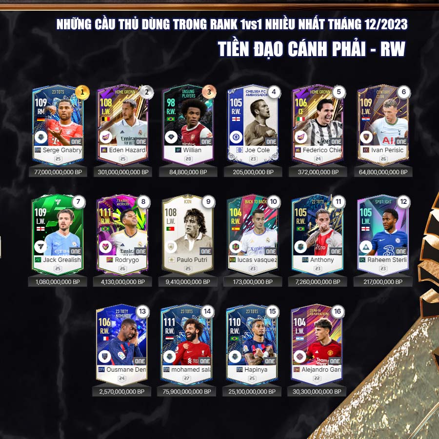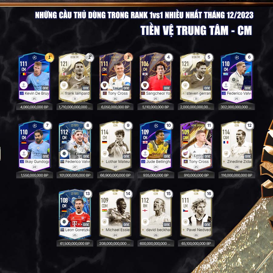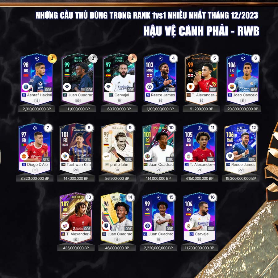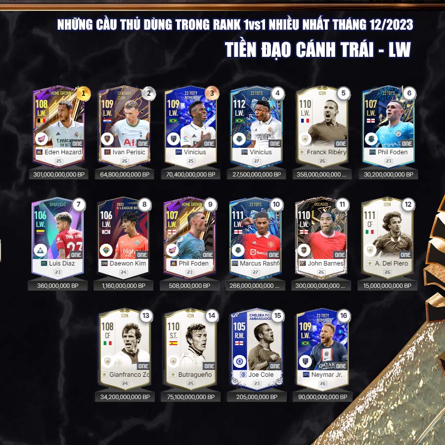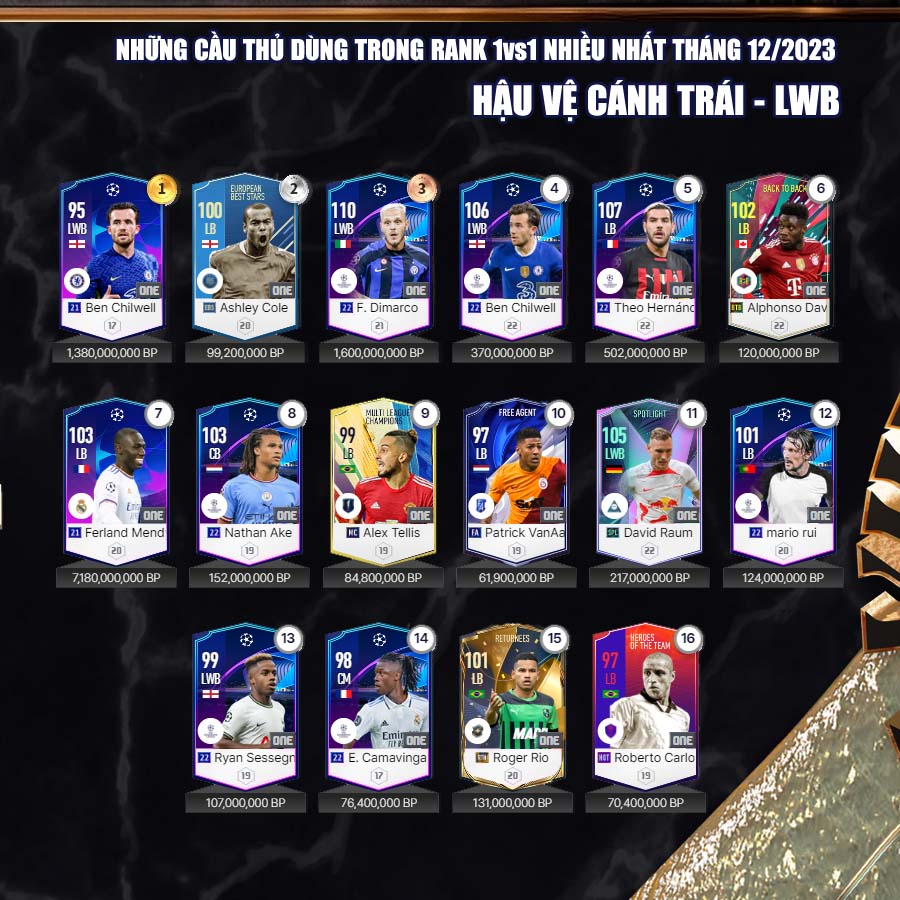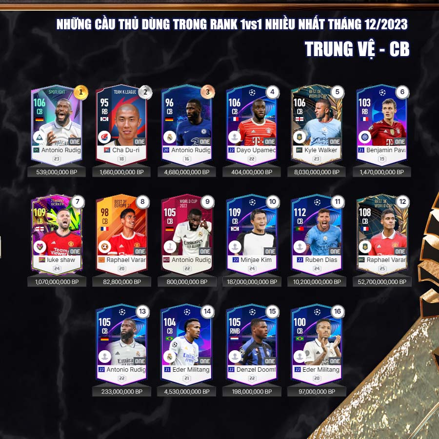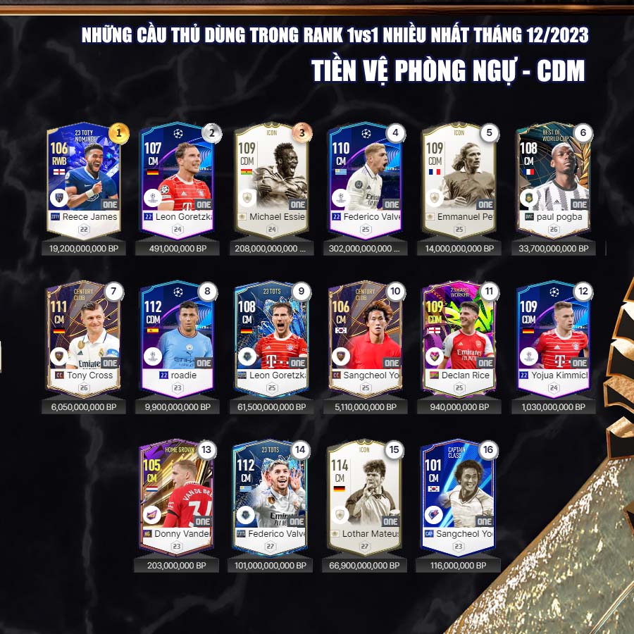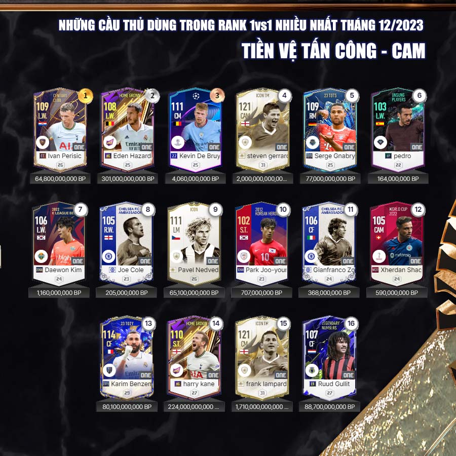 Hãy cùng chúng tôi điểm lại danh sách các cầu thủ được được sử dụng nhiều nhất tại máy chủ Hàn Quốc trong tháng 12 theo từng vị trí cụ thể