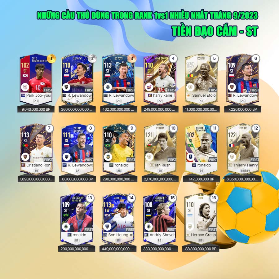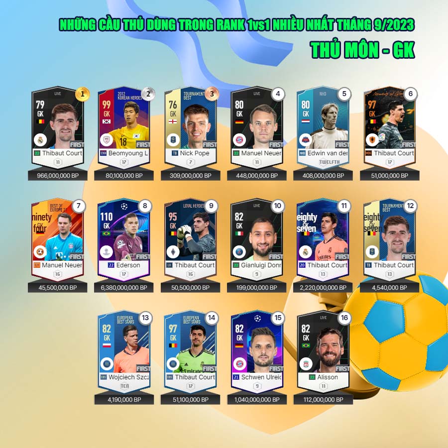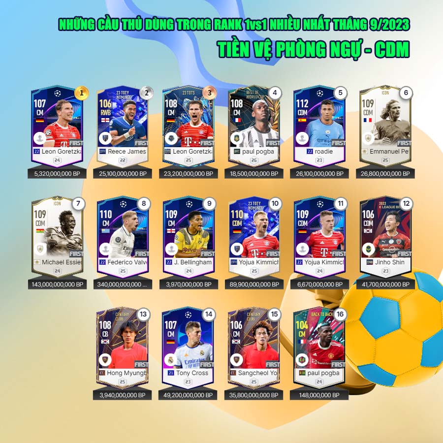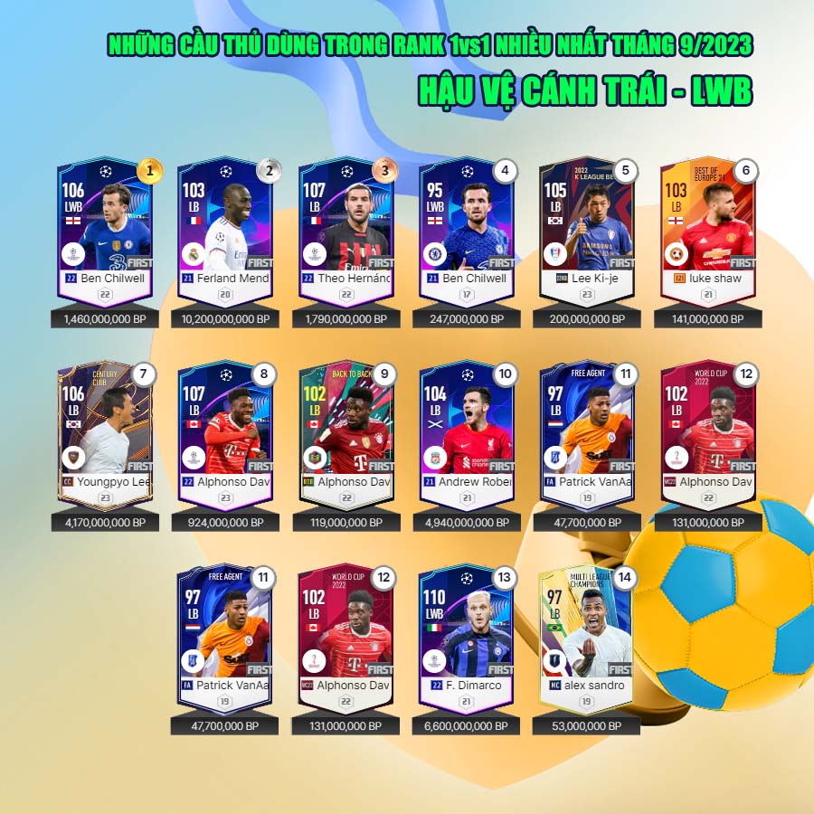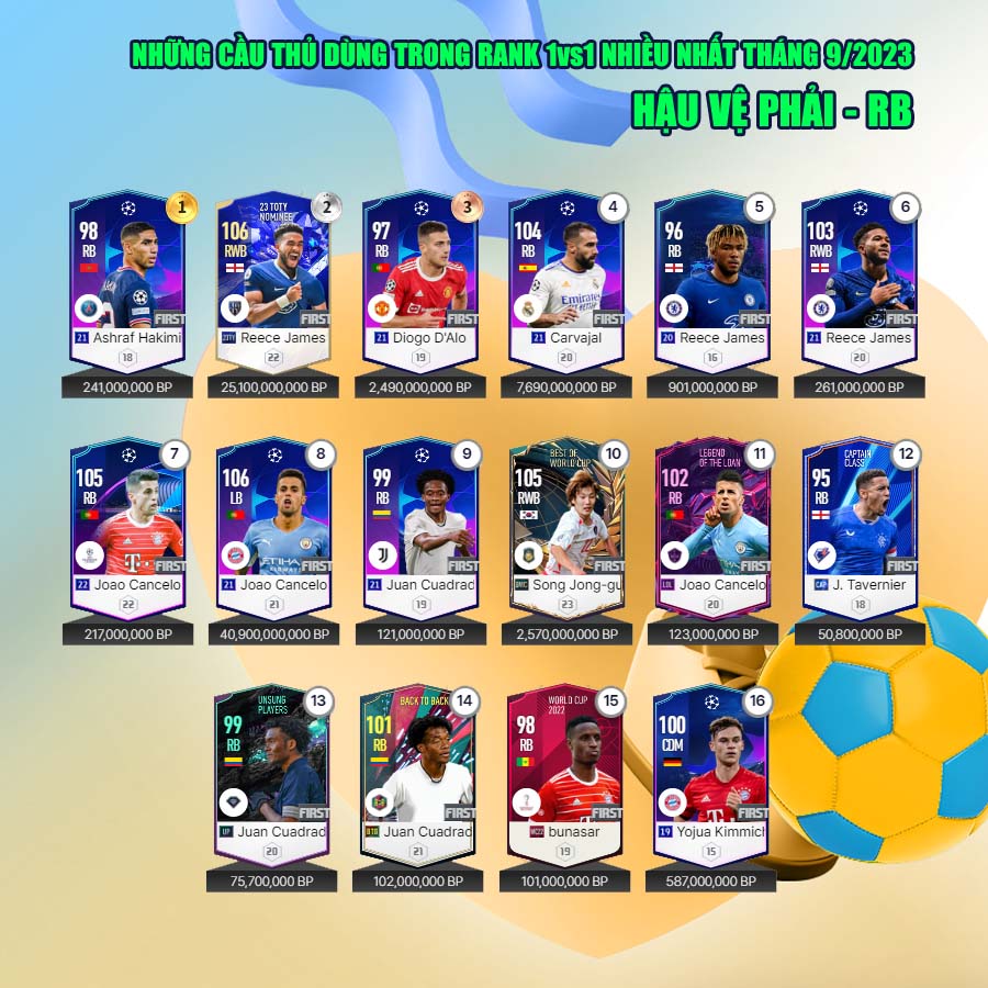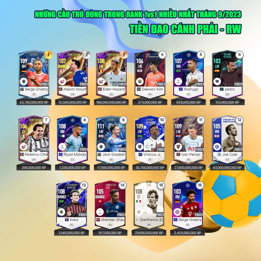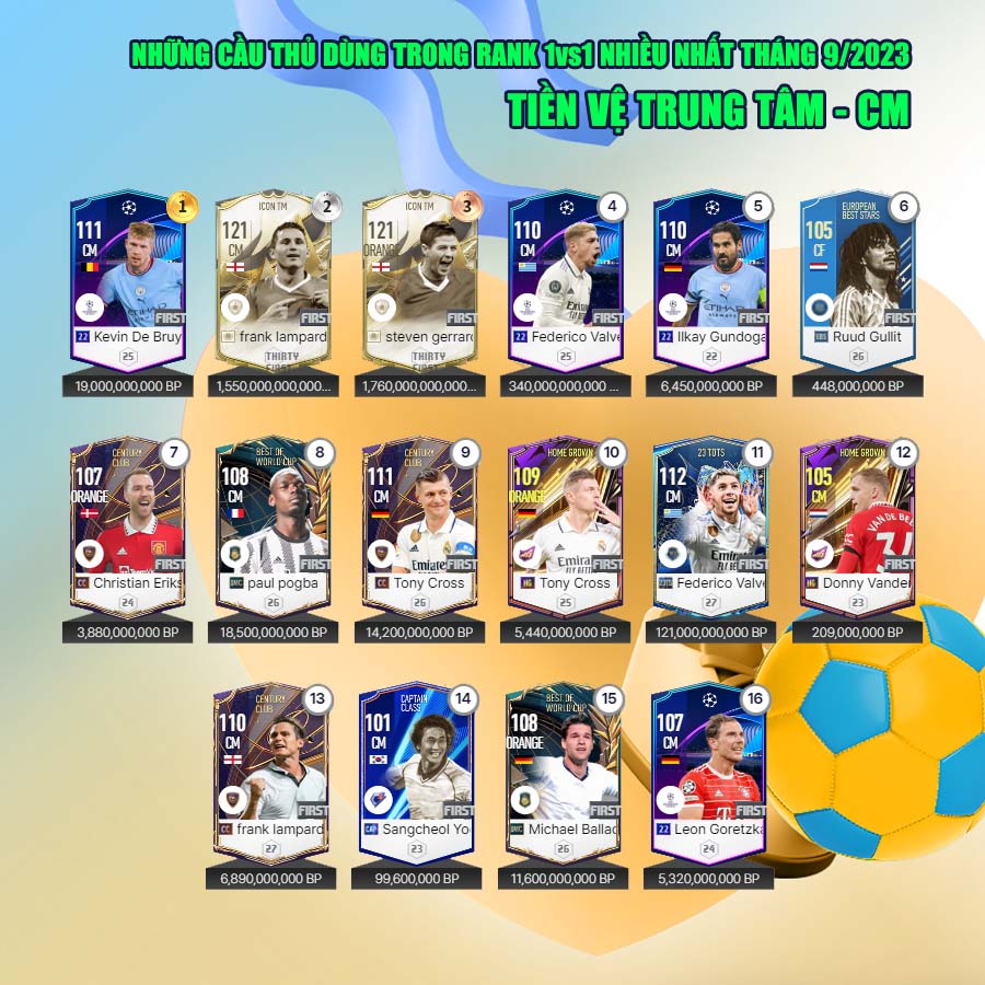 Dưới đây là những cầu thủ được các HLV sử dụng nhiều nhất trong tháng 9 vừa qua, tất nhiên sự xuất hiện của hai mùa giải 23HW và FC Ambassador là chưa nhiều.