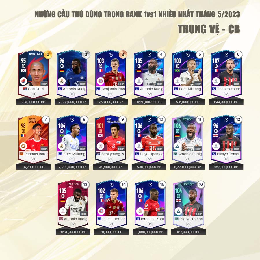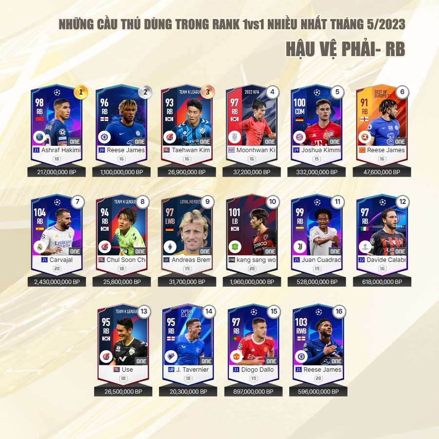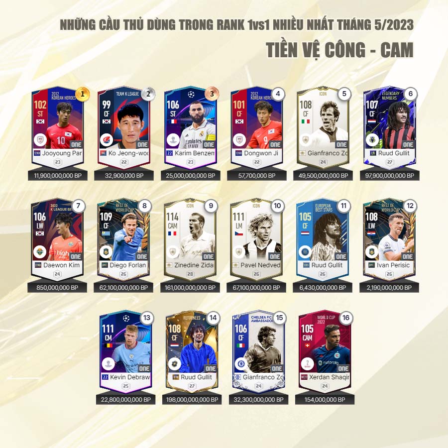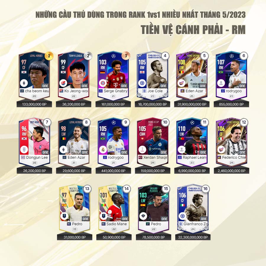 Các hậu vệ cánh có mức lương 15-16 bỗng dưng hot trở lại để gánh lương cho các cầu thủ tấn công với mức ovr cực cao của ICON TM. Đáng chú ý các bạn có thể thấy là hai huyền thoại Zola và Butragueno cũng được các game thủ Hàn kéo ra đá LWB, RWB. Việc tận dụng các cầu thủ có khả năng tấn công tốt vượt trội đưa về vị trí này sau đó gắn cho skill xâm nhập để tạo đột biến trong các sơ đồ 5 hậu vệ không phải là mới. Nhưng có lẽ đây là lần đầu thấy hai tiền đạo được kéo về như vậy.