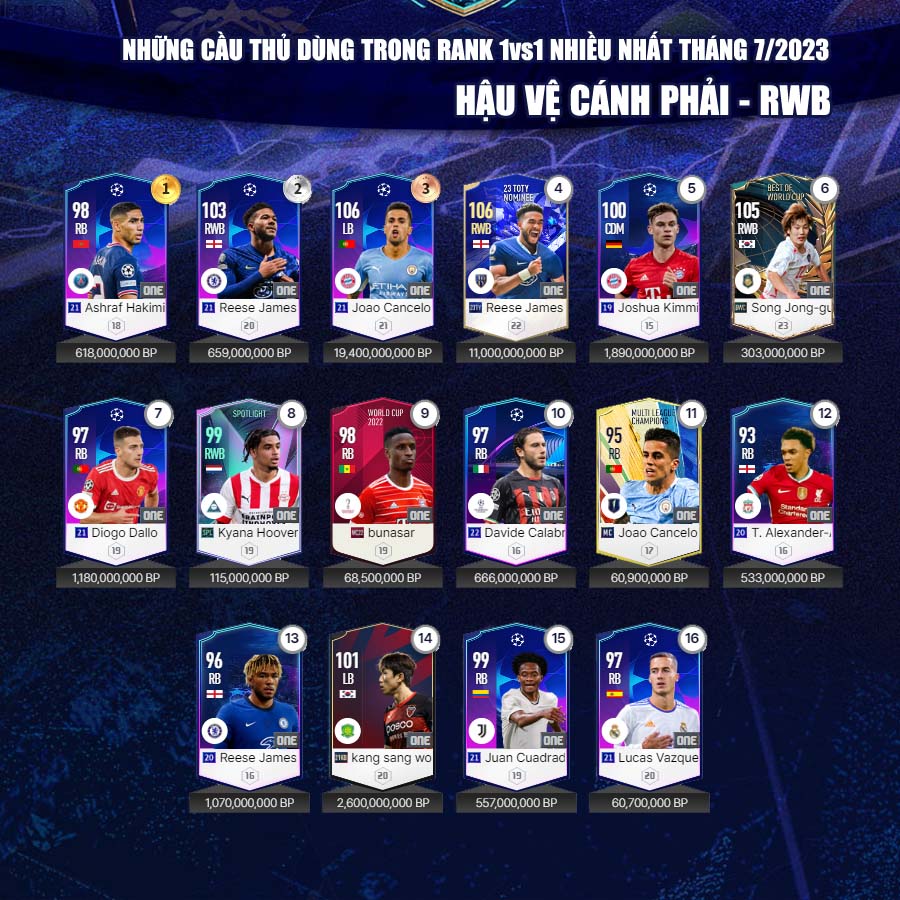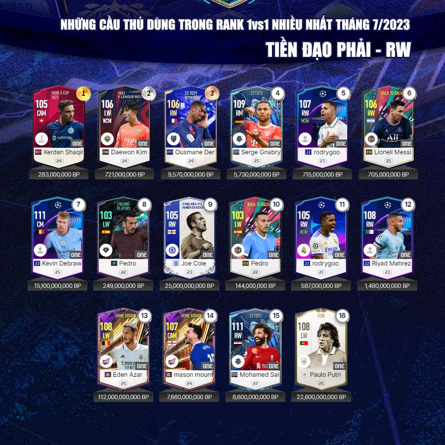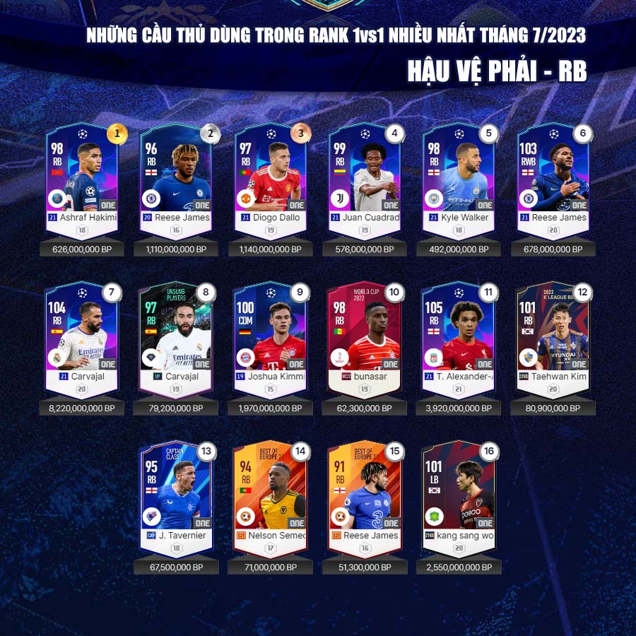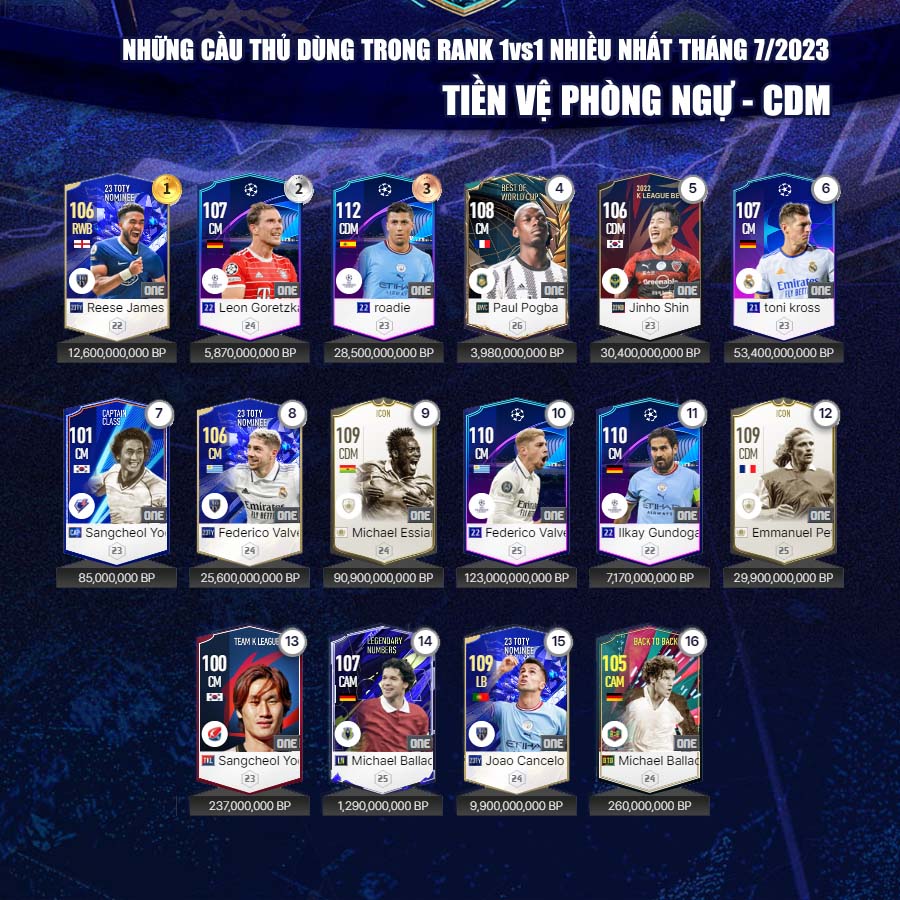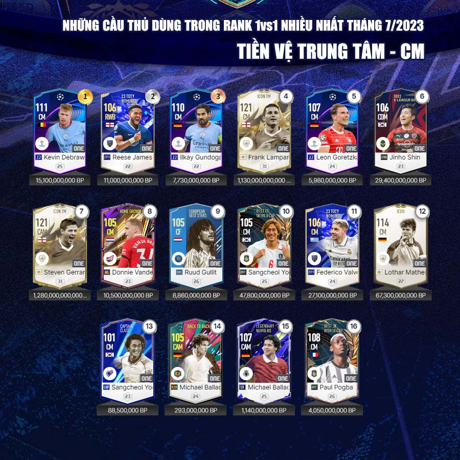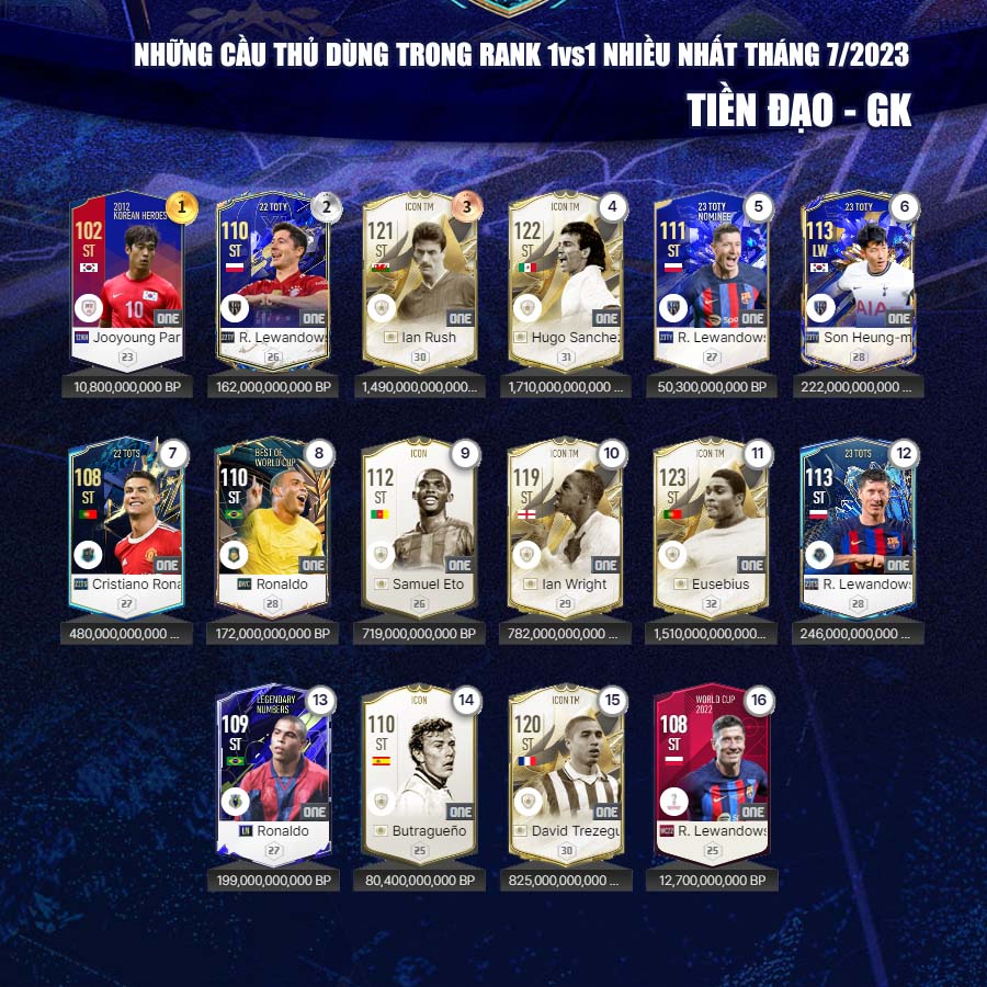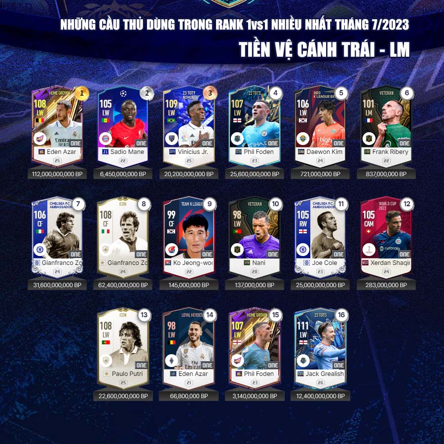 Không có gì thay đổi nhiều ở vị trí tiền đạo khi mà các ICON TM vẫn được đánh giá là vượt trội so với phần đông các cầu thủ còn lại. Tuy nhiên ở các vị trí khác thì các cầu thủ ICON cũng đã xuất hiện nhiều hơn do được nâng cấp về chỉ số. Việc trong tháng 7 không có thêm mùa giải mới ra mắt khiến cho không có biến động lớn về các nhân tố trong đội hình của các HLV