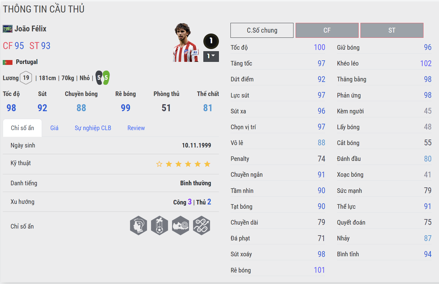 Tiền đạo đang thi đấu cho Barcelona rất đáng dùng cho vị trí hộ công hoặc thậm chí là đẩy ra cánh. Điểm nổi bật của Felix nằm ở khả năng xử lý bóng cực kì dẻo, cùng với đó tốc độ tốt và khả năng dứt điểm ổn định ở cả 2 chân. Felix rất tích cực trong các tình huống lên bóng, tấn công, di chuyển chạy chỗ linh hoạt để hút người và tạo cơ hội tấn công hiệu quả.