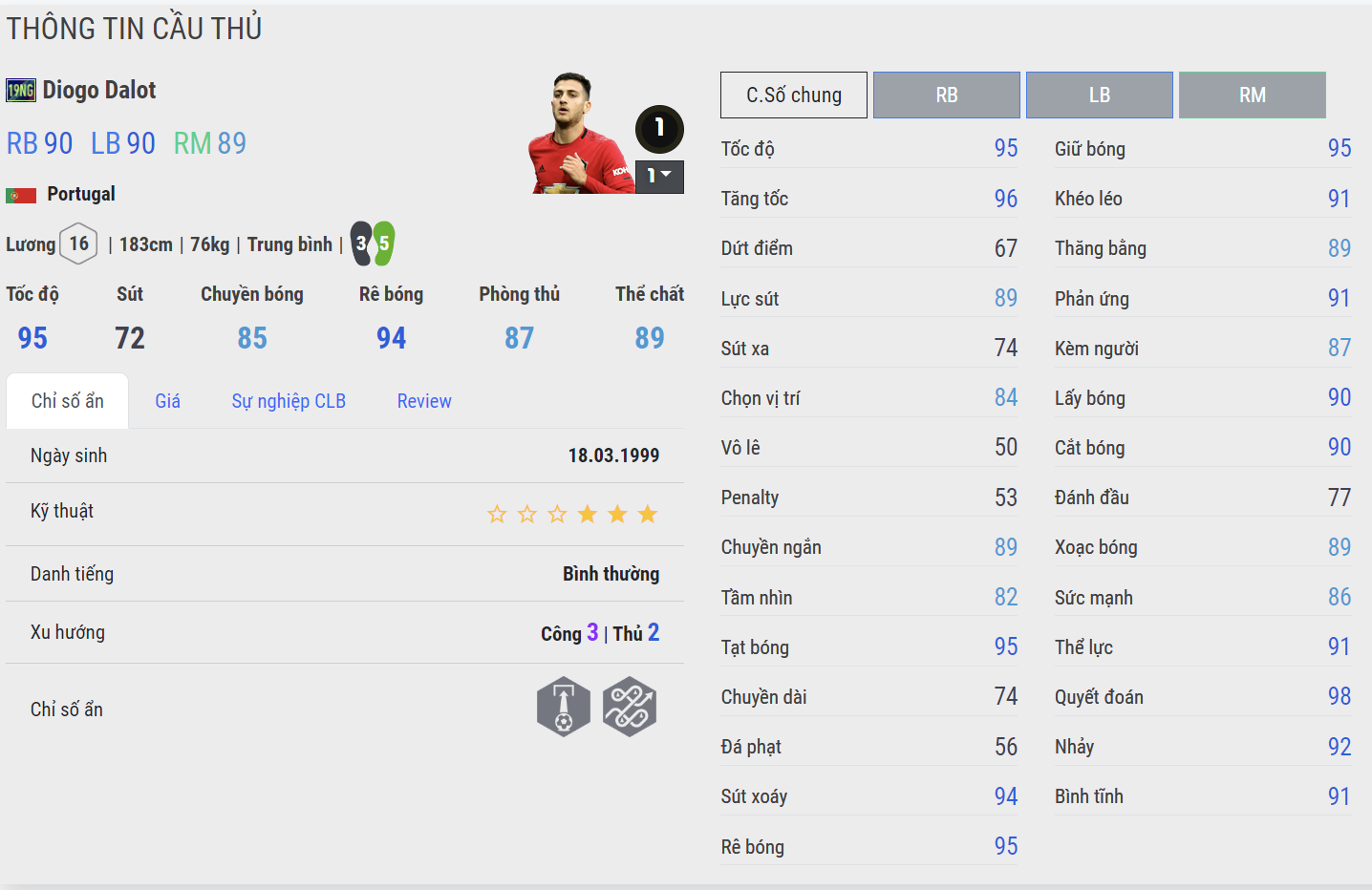 Dalot được đánh giá là một trong những hậu vệ phải cực kì toàn diện và hiệu quả ở mùa 19NG. Thể hình to khỏe, tốc độ tốt và lối đá có nhiều điểm giống với Theo Hernandez. Ngoài tốc độ và sức tì đè tốt, khả năng cắt bóng, đánh chặn hay chọc chân lấy bóng rất khó chịu. Sải chân dài giúp những tình huống đau tốc của Dalot trở nên hiệu quả hơn rất nhiều.