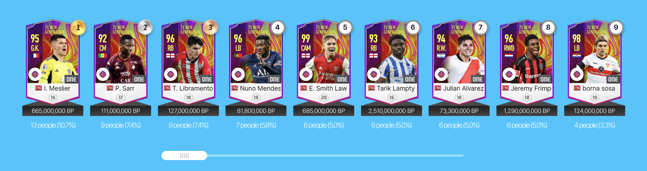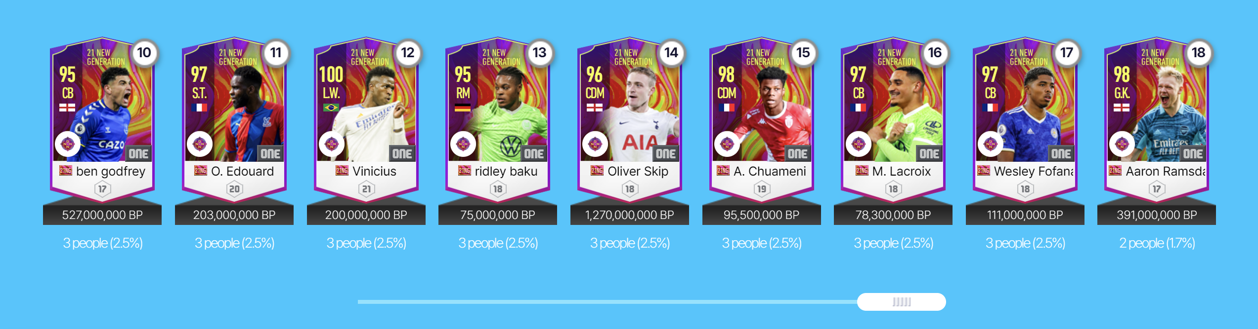 Mùa thẻ 21NG đã ra mắt được một khoảng thời gian rất dài và các cầu thủ mùa thẻ này đang dần ít được quan tâm đến. Nguyên do chính là bởi việc ra mắt nhiều mùa thẻ mới chất lượng đã dần đưa mùa thẻ 21NG vào quên lãng, không những vậy mức thẻ cộng 8 lại là một mức thẻ không dễ dàng săn được do liên tục bị nhà phát hành fix giá.