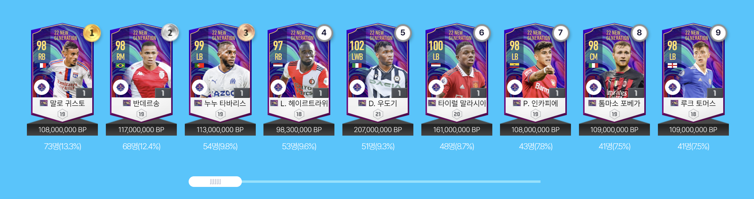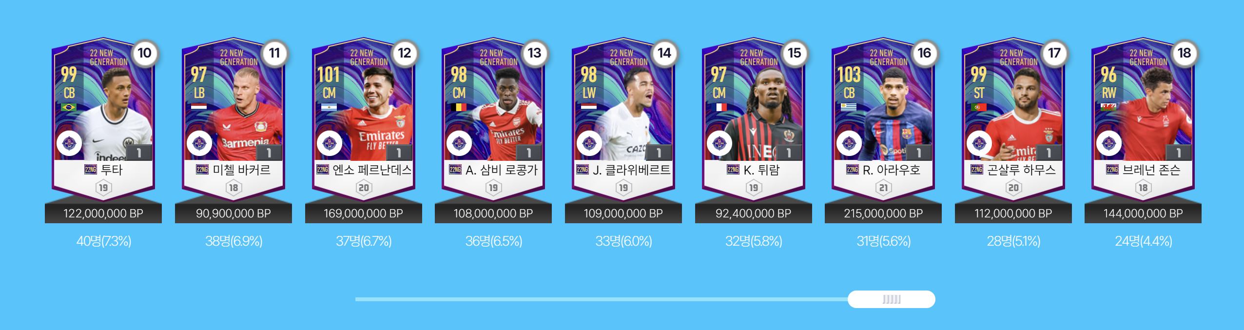 Mùa giải 2021 – 2022 chứng kiến phong độ thi đấu ấn tượng của rất nhiều sao mai như Kvaratskhelia, cậu bé vàng Gavi, cơn lốc đường biên Malacia. 22 New Generation là mùa thẻ hội tụ những tài năng trẻ sáng giá đang có màn trình diễn xuất sắc tại các CLB trong mùa giải 2021 – 2022 và có tiềm năng tỏa sáng hơn nữa trong tương lai.