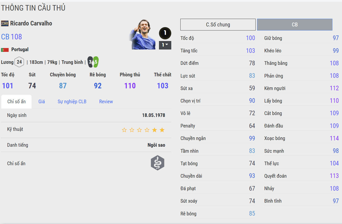 Trung vệ của Bồ Đào nha là cái tên tiếp theo góp mặt trong đội hình này. Sở hữu thể hình chỉ cao 1m83 tuy nhiên Carvalho lại có kỹ năng phòng ngự rất xuất sắc và hiệu quả. AI kèm người thông minh, khả năng đọc tình huống đánh chặn tốt, tranh chấp tốt cùng kỹ năng không chiến ổn là những điểm mạnh trong khả năng phòng ngự của Carvalho. Tốc độ không quá nổi bật nhưng cũng đủ dùng ở những tình huống nhất định cũng giúp Carvalho linh hoạt hơn rất nhiều.