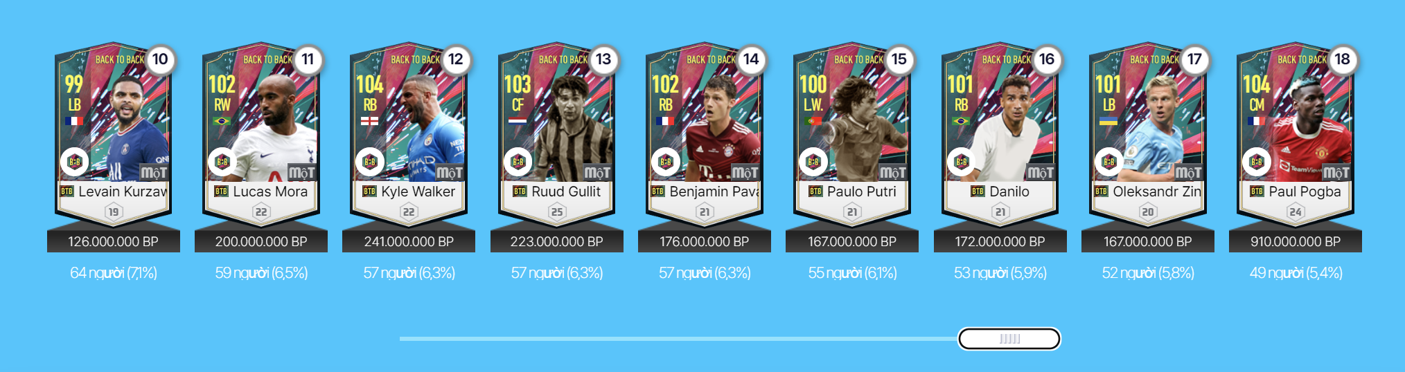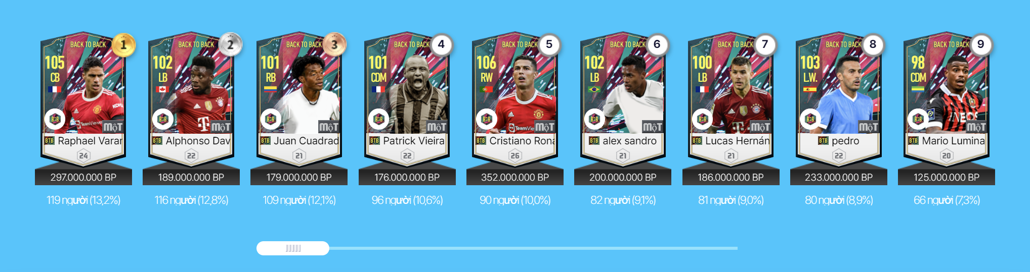 Ra mắt từ tháng 12 năm 2021, mùa thẻ BTB hiện nay vẫn có nhiều giá trị sử dụng khi được đập lên mức thẻ cộng cao. Nhiều cái tên vẫn cho thấy sự bá đạo về giá trị sử dụng và được nhiều HLV săn đón