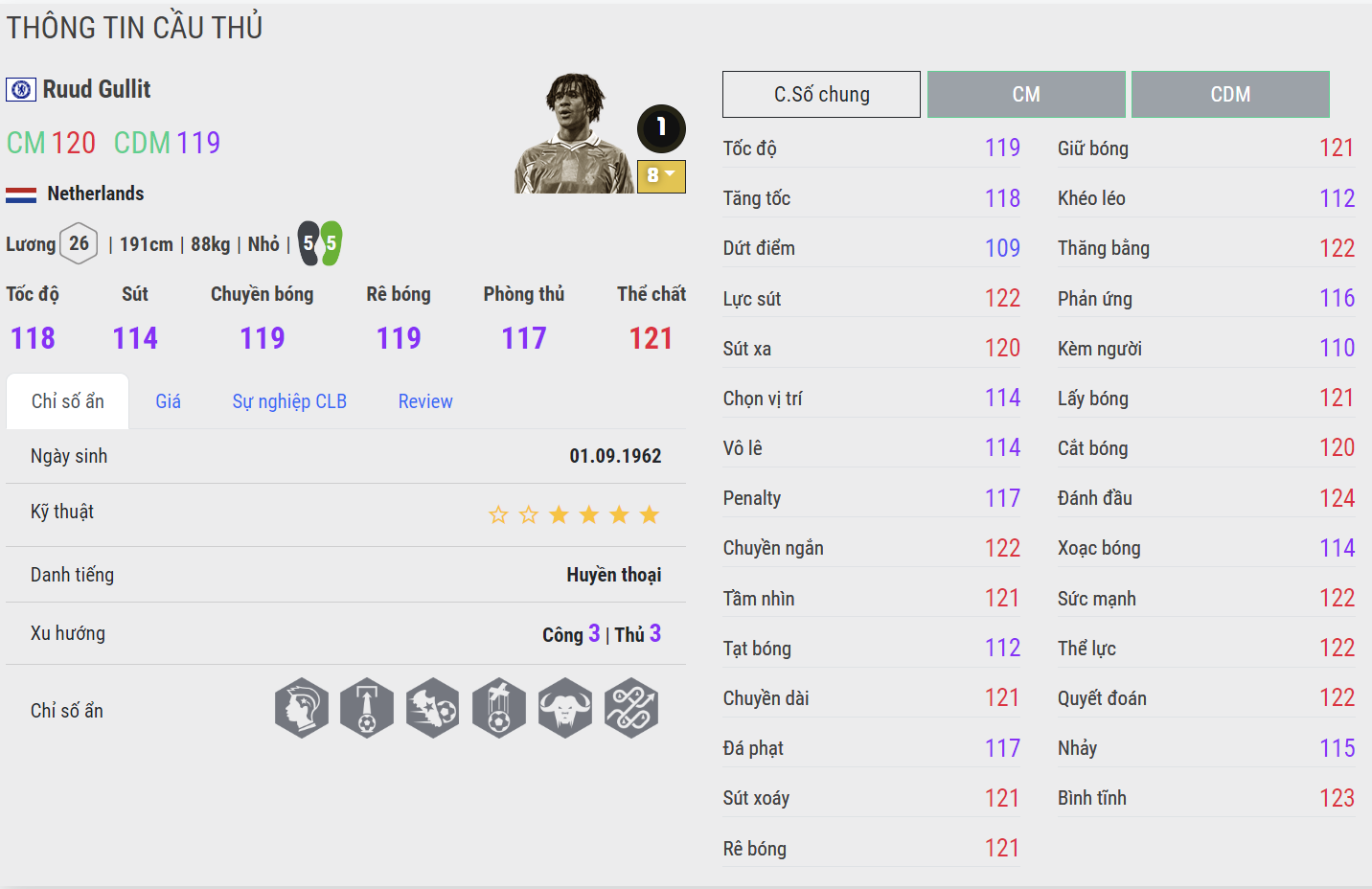 Được đánh giá là một trong những cầu thủ bá nhất game, không quá ngạc nhiên khi Gullit có mặt trong danh sách này. Tốc độ, kỹ thuật. không chiến, khả năng tham gia vào các tình huống tấn công tốt cùng sức tì đè cực khỏe khiến cho Gullit gần như toàn diện trên mặt trận tấn công. Không những thế, anh hoàn toàn có thể đá như một tiền vệ trung tâm và tham gia nhiều vào công tác phòng ngự khi cần