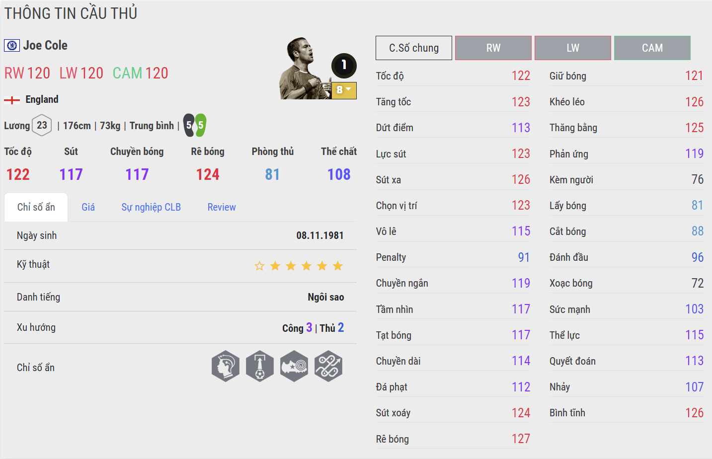 Cole được xem là cái tên đáng tin dùng nhất thời điểm hiện tại. Anh sở hữu cho mình 3 team color lớn đó là ĐT Anh, Chelsea và Liverpool. Cầu thủ người Anh có lối chơi kỹ thuật, khả năng triển khai bóng cực kì tốt ở hành lang cánh. Kỹ năng dứt điểm xuất sắc bằng cả 2 chân và khả năng chuyền bóng, tạt bóng rất tốt của mình. Điểm mạnh của Cole nằm ở khả năng rê dắt bóng và sút xa cực kì lợi hại, 2 thứ rất cần cho meta hiện tại.