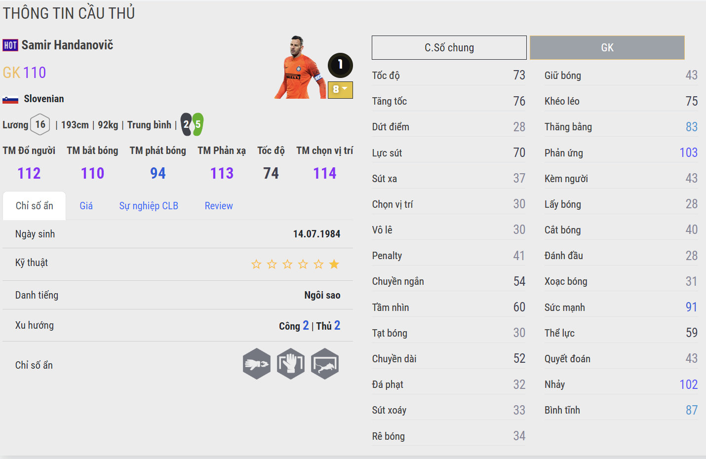 Thủ môn của Inter Milan được đánh giá rất cao trong khung gỗ với khả năng cản phá rất tốt, Với mức lương chỉ 16, các HLV fan Inter Milan đã có cho mình một mẫu thủ môn có khả năng cản phá tốt những tình huống bóng lẫn khả năng đối mặt trong các tình huống nguy hiểm cực ổn định.