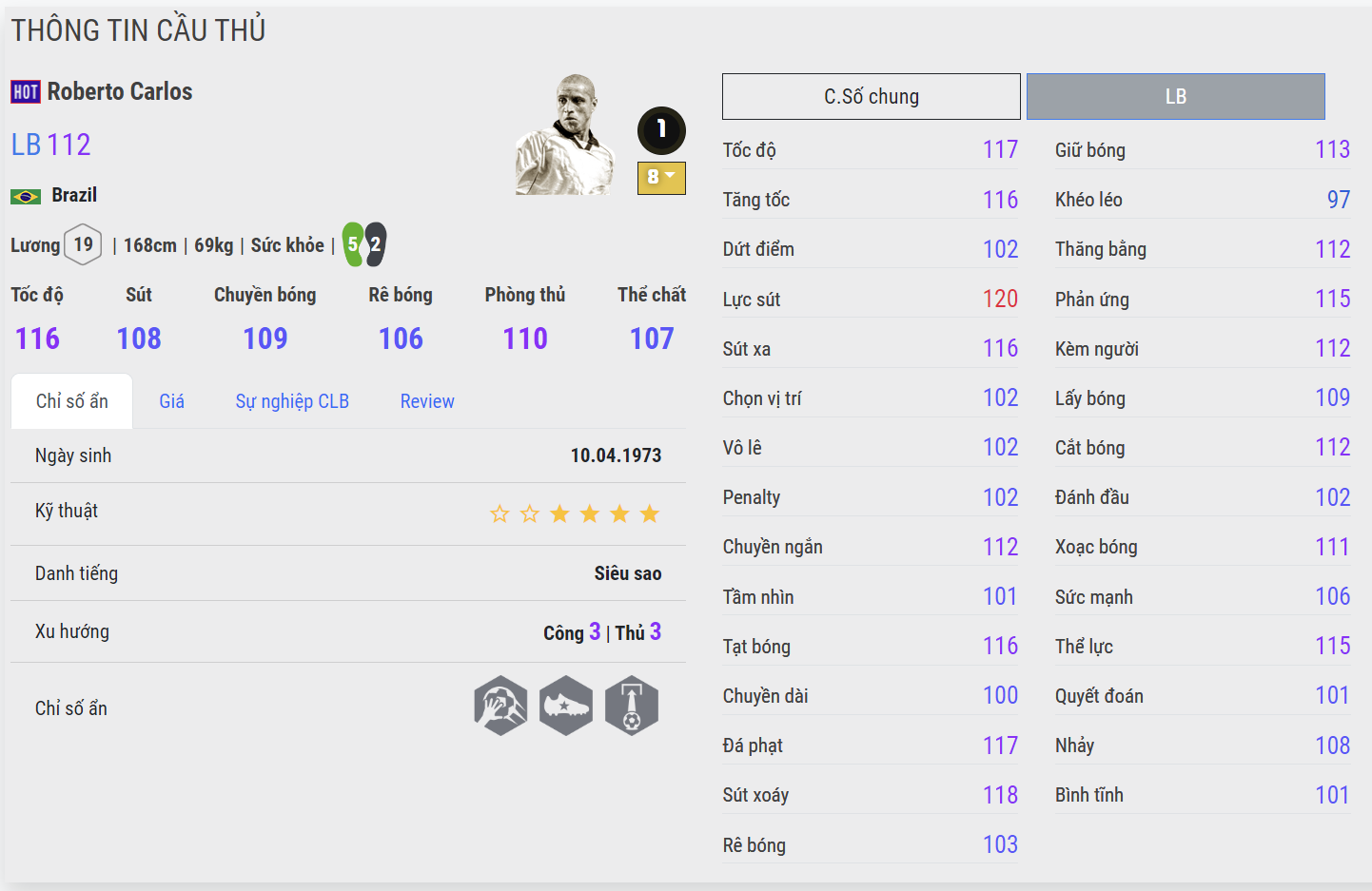 Hậu vệ của Real Madrid được đánh giá rất cao cho một vị trí chạy cánh ở thời điểm hiện tại. Khả năng công thủ toàn diện, tì đè cực lì và có tốc độ rất tốt chính là những ưu điểm của Carlos. Mức lương 19 cho một hậu vệ biên giờ không còn là hạn chế khi mức lương tổng của FC Online đã lên đến con số 250. Vì vậy những ai sử dụng team color Real Madrid hoặc Brazil đều có thể sử dụng.