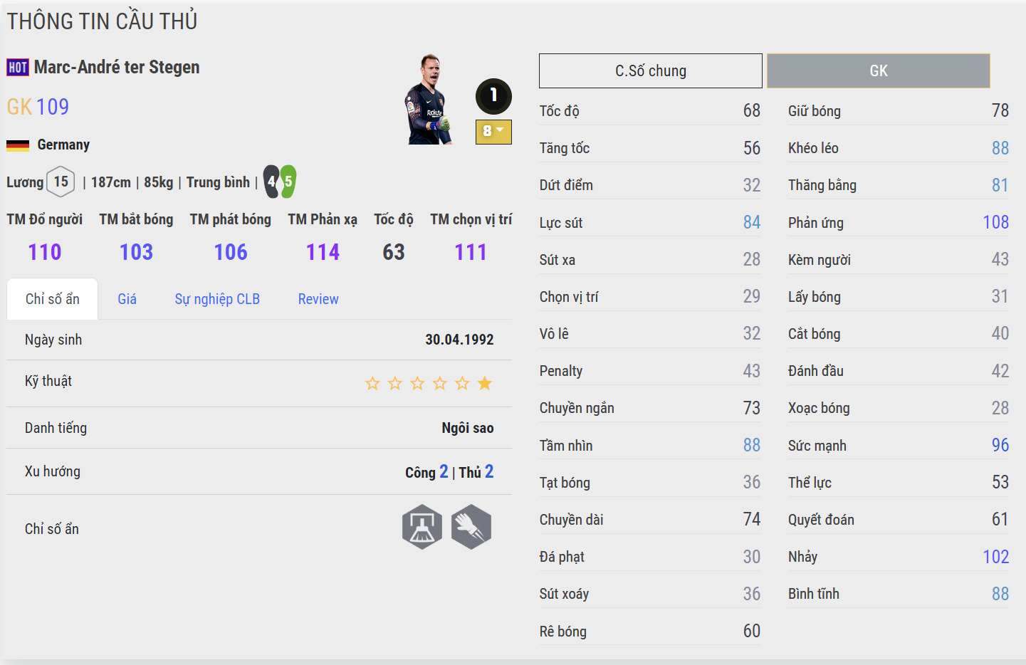 Thủ môn của Barcelona hiện đang đứng đầu danh sách mùa HOT đáng được tin dùng nhất. Không quá bất ngờ bởi lẽ Stegen ở những phiên bản gần đây cho thấy một tỉ lệ cản phá đáng ngưỡng mộ. Thông số qua từng trân đấu của Stegen thực sự ấn tượng và hiện tại thủ môn người Đức còn được đánh giá cao hơn cả Neuer trong khung gỗ của teamcolor Đức.